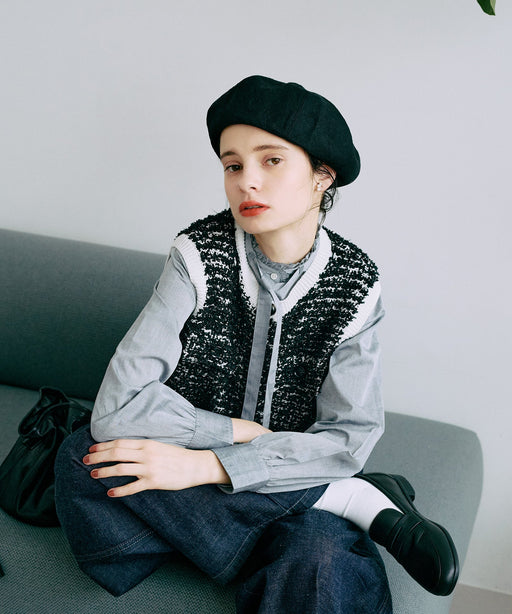 バイカラーカノコ編みカーディガン