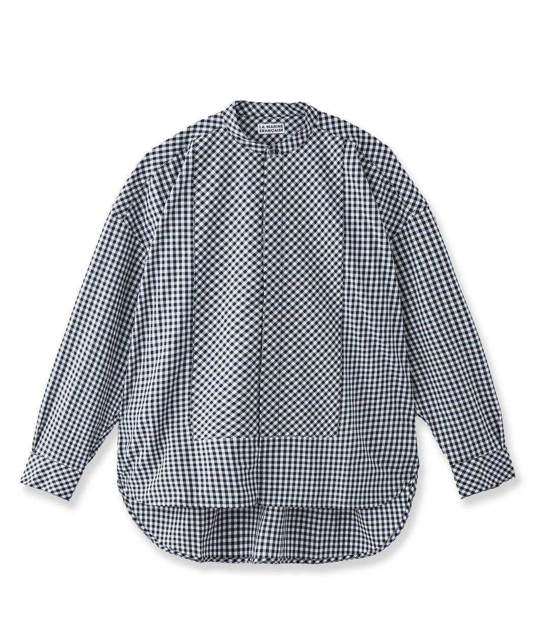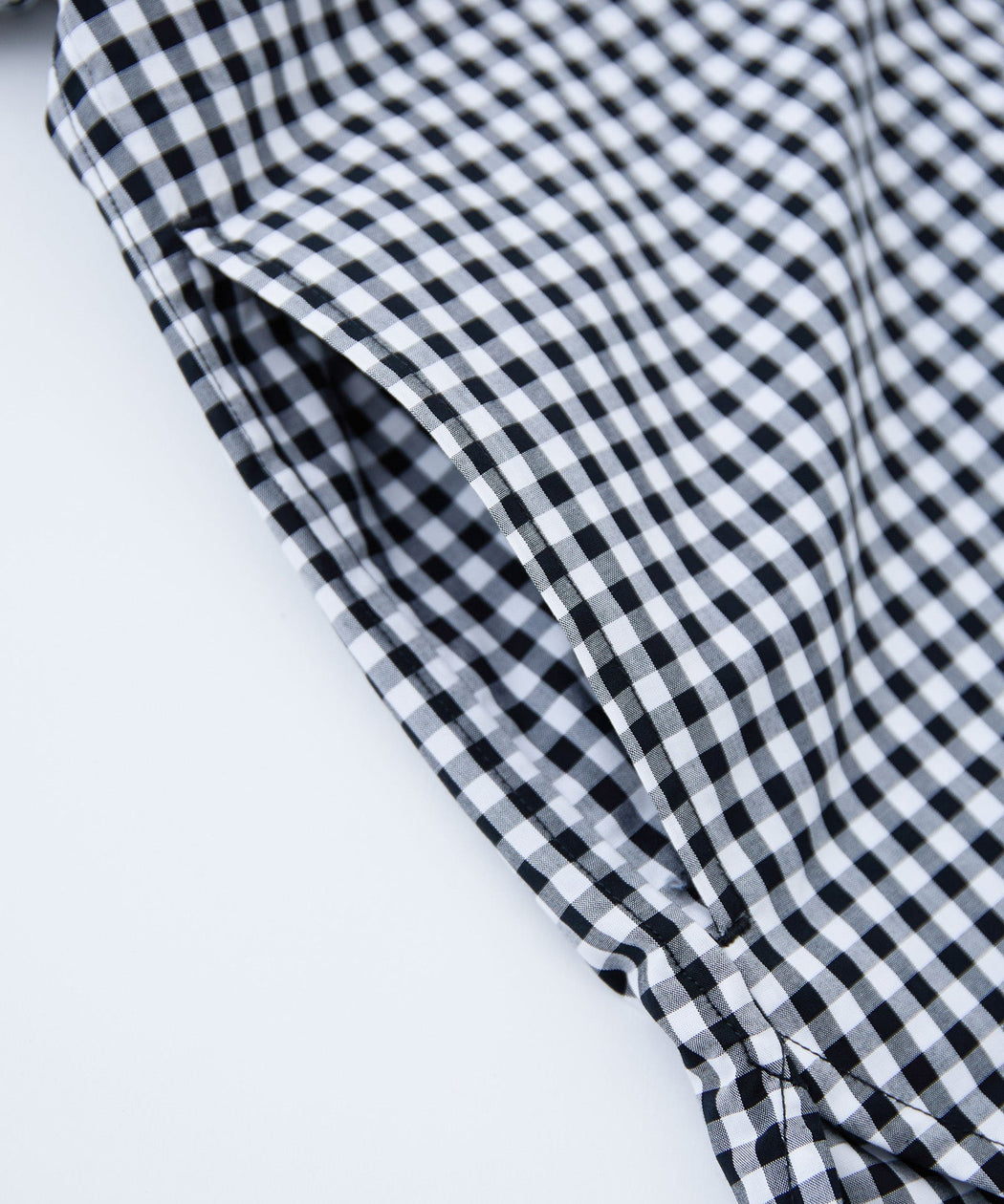 前見頃に大きく取ったヨークは、柄をバイヤス使いにすることでさりげないアクセントに。