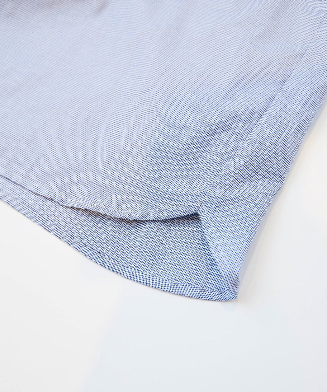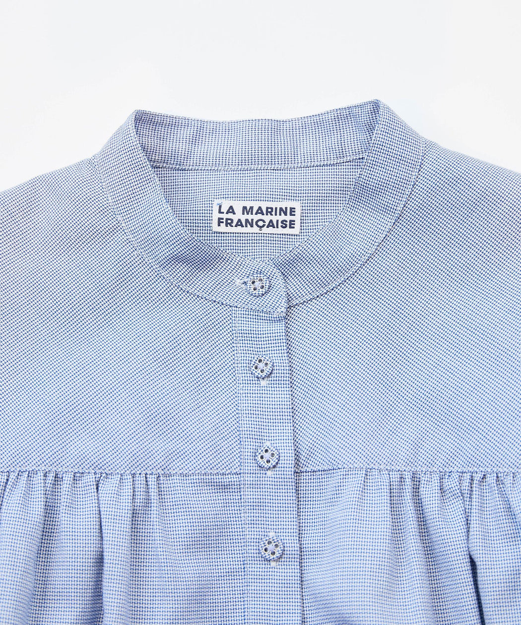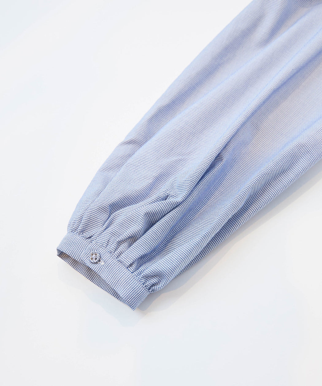 ホワイト×ブルーの小さなチェック柄がアクセントになった、軽やかなコットン素材のブラウスです。
