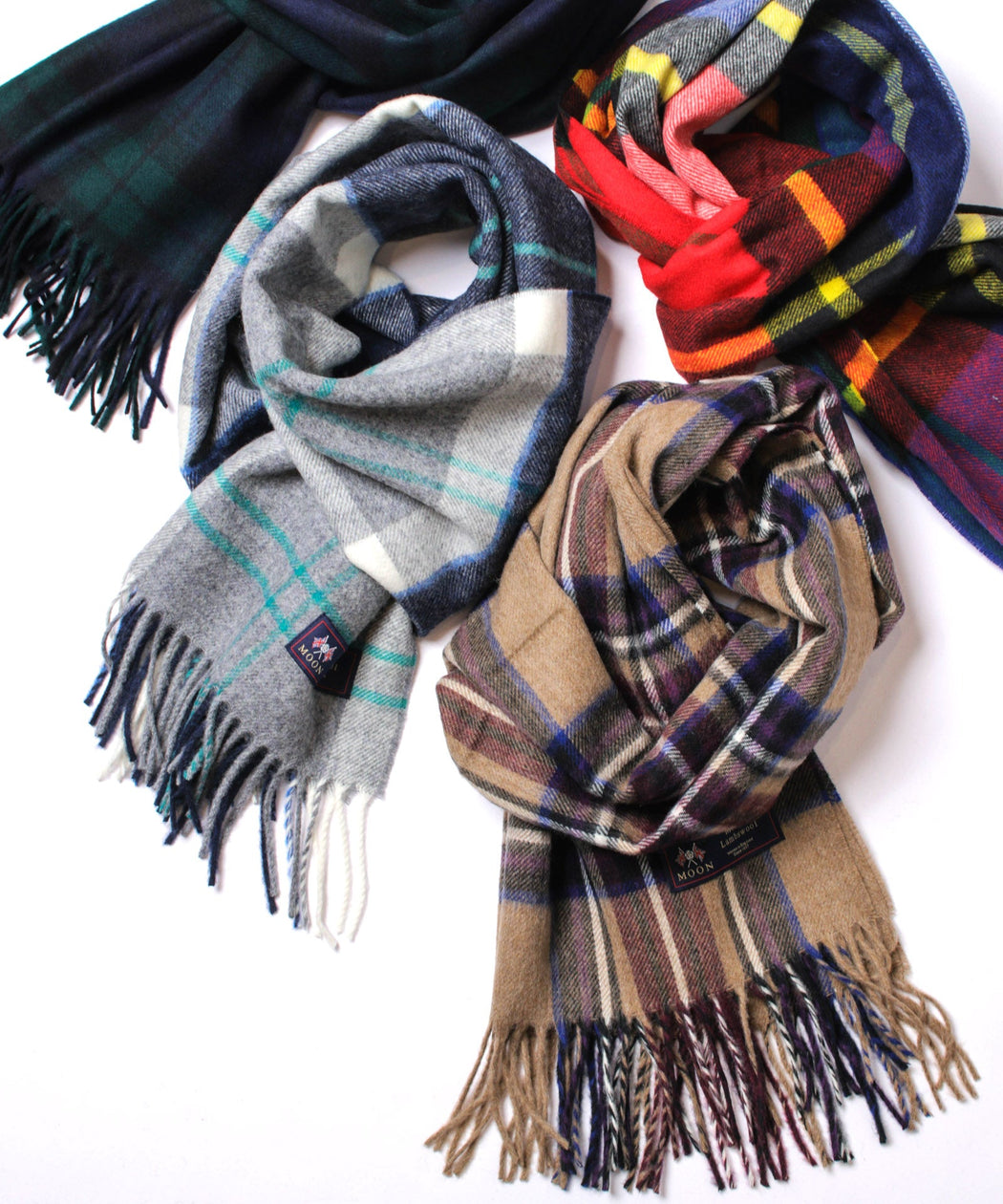 定番のチェックマフラーは、アウターなどで暗くなりがちな冬のコーデを一気に華やかにしてくれるアクセント使いに抜群のアイテムです。