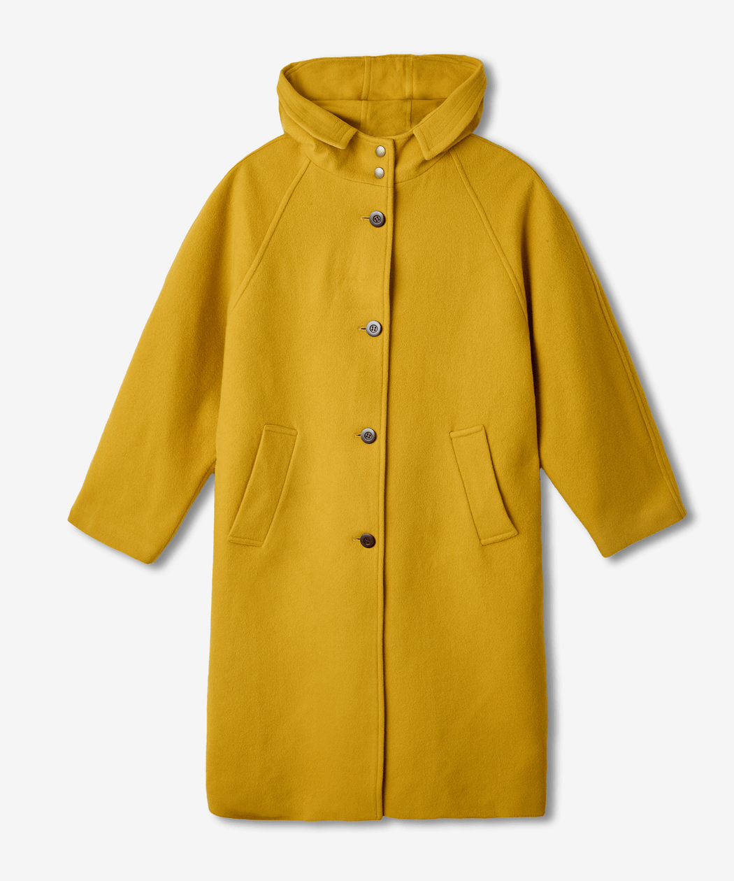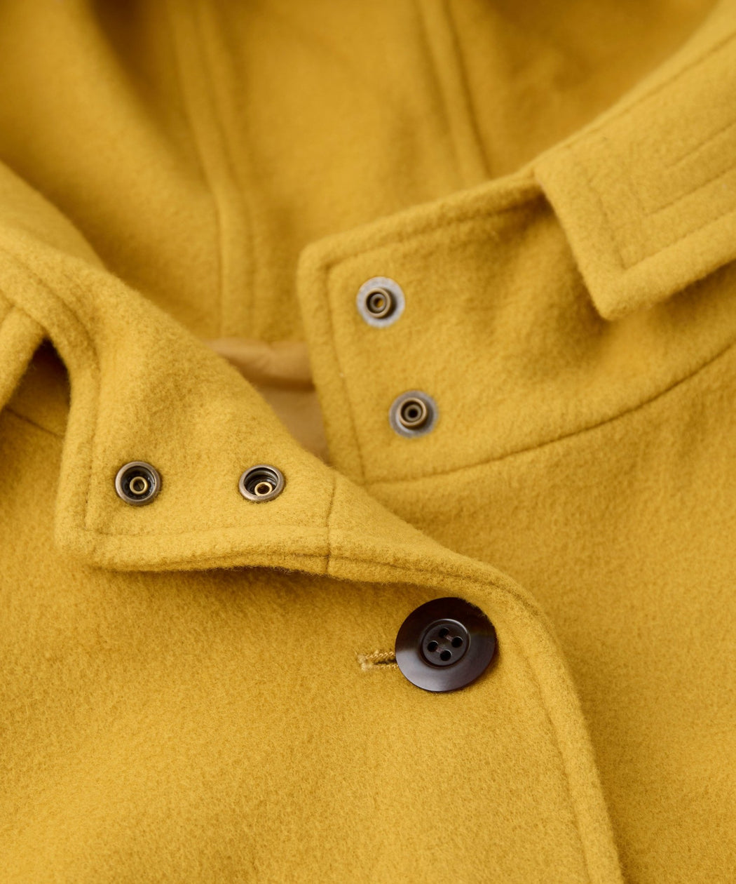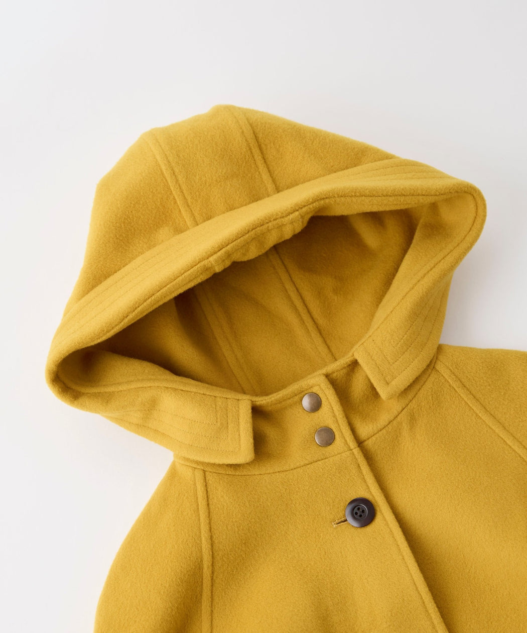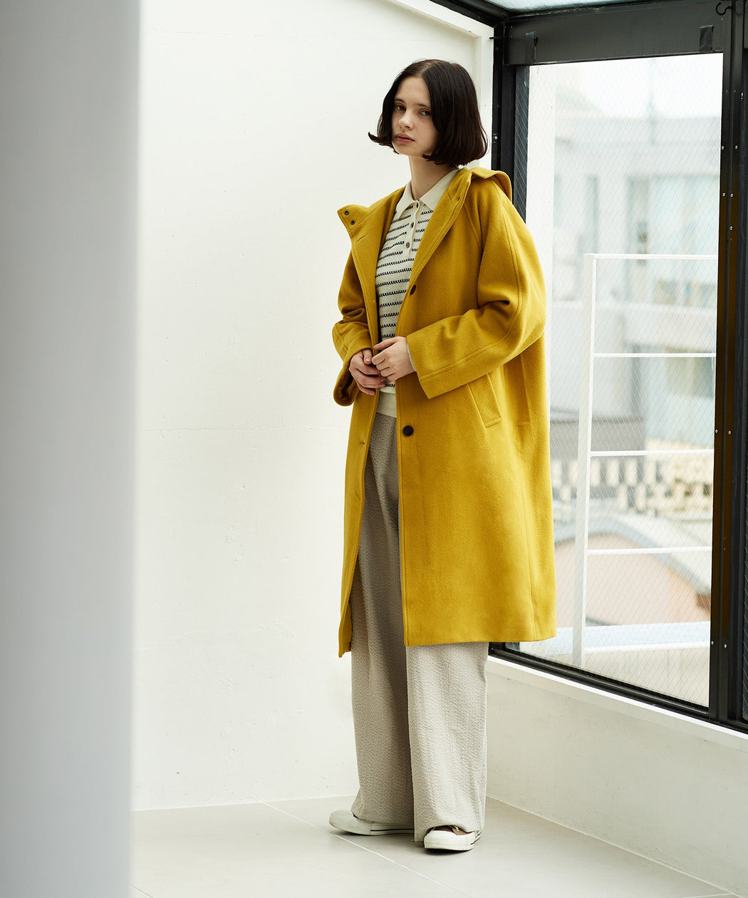 フードに襟デザインをプラスし、着るだけで襟元が立体的に決まるデザイン。