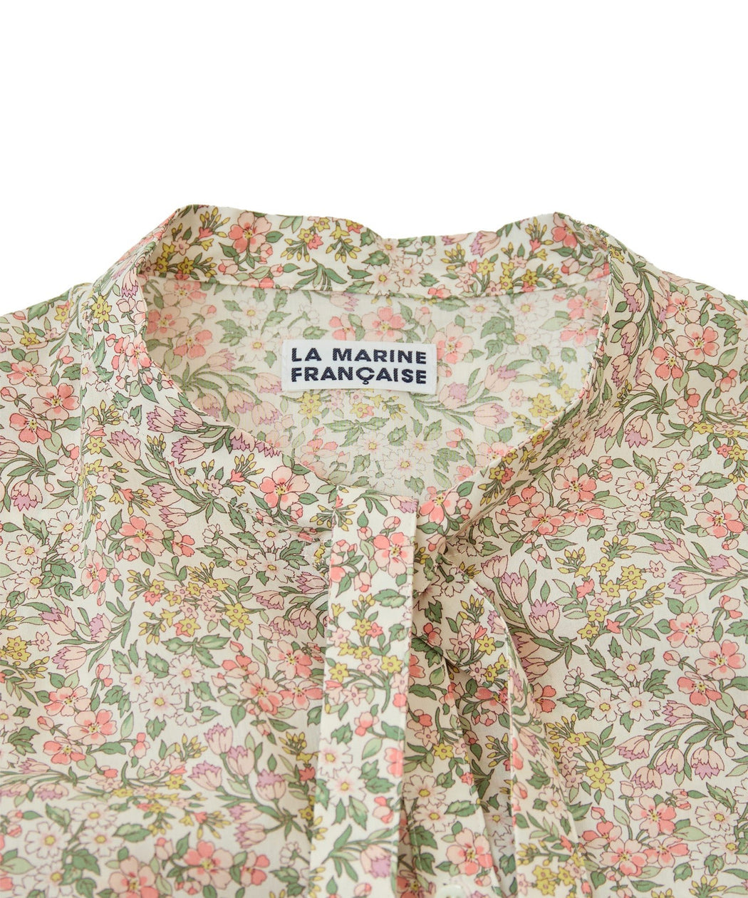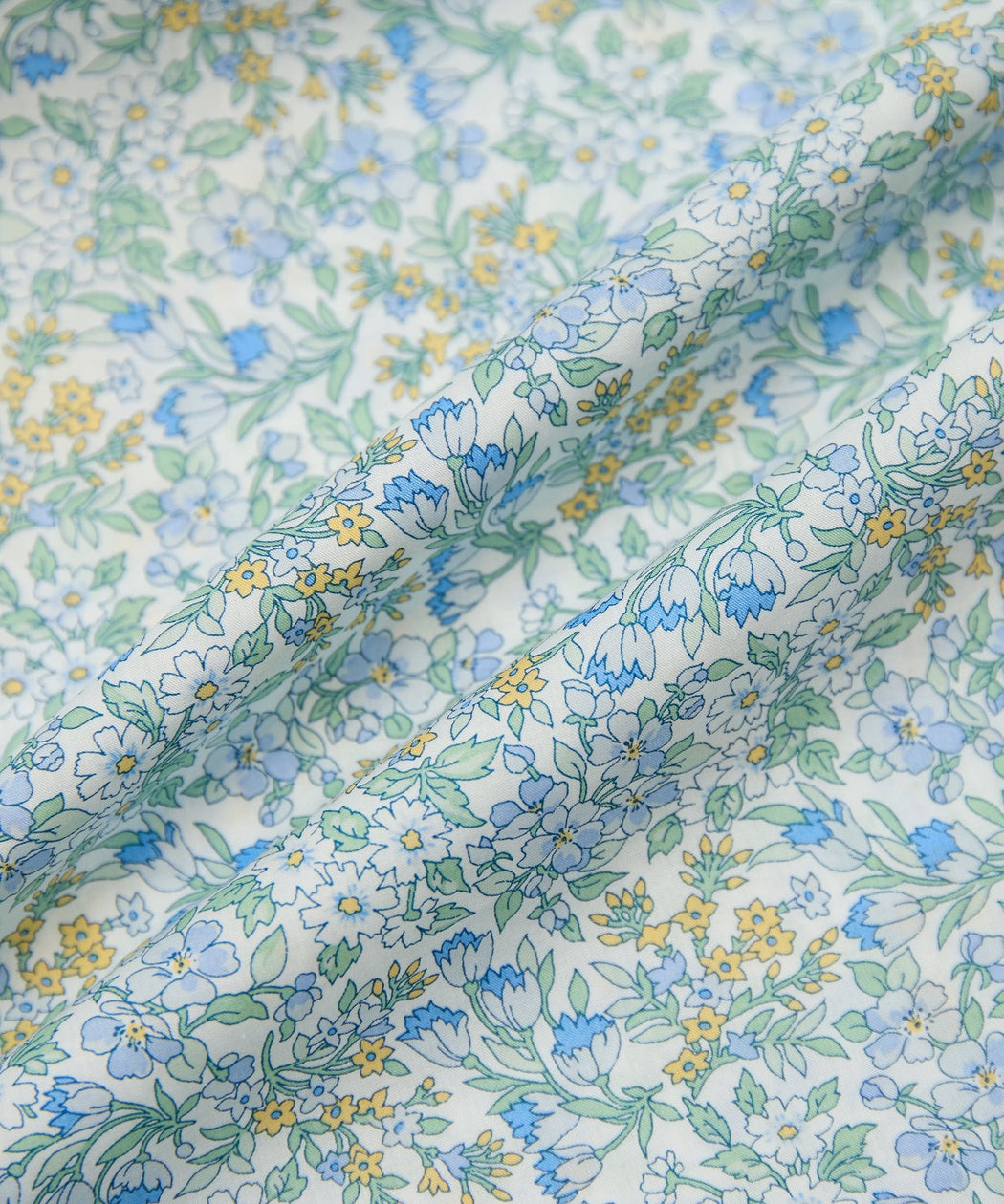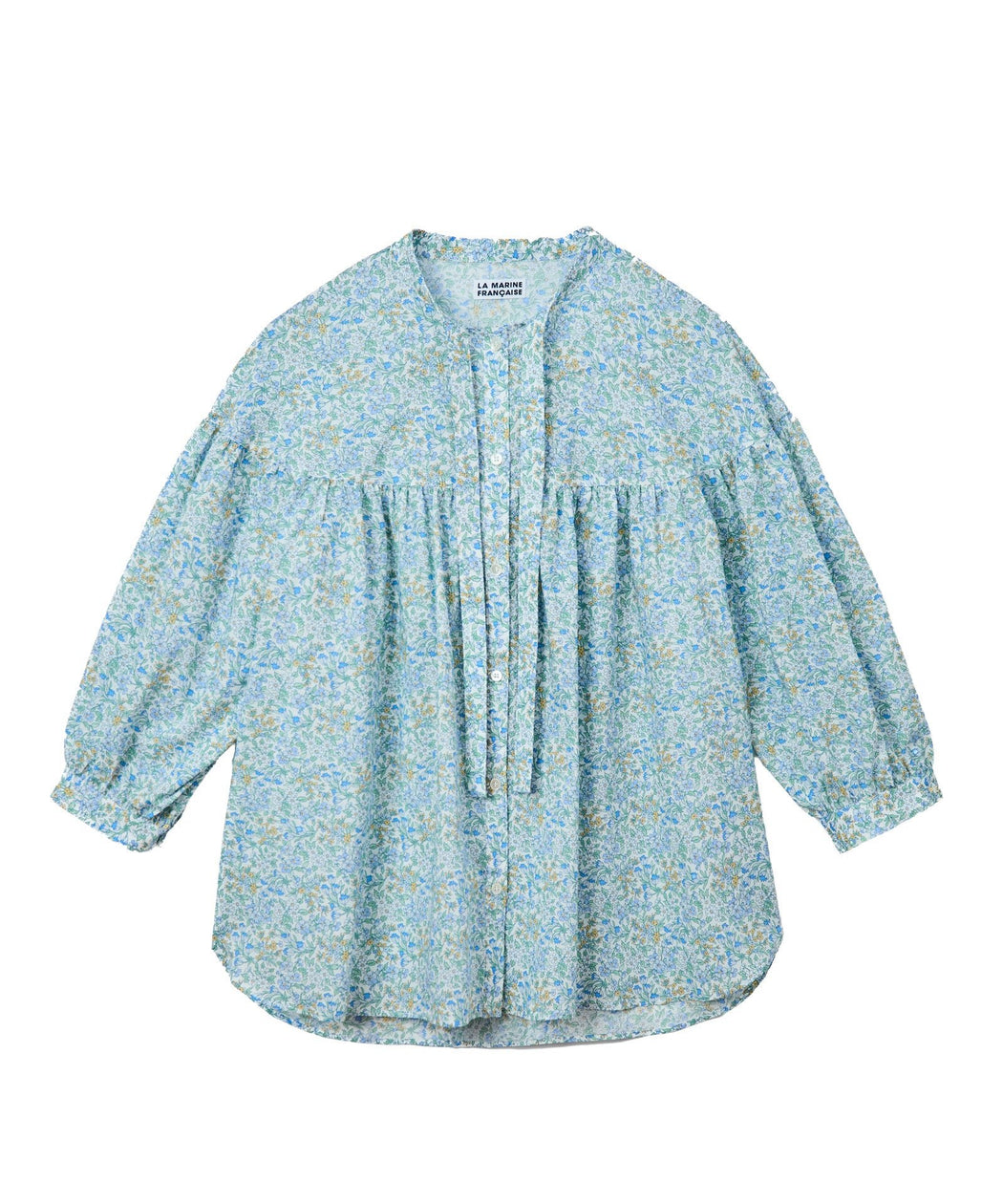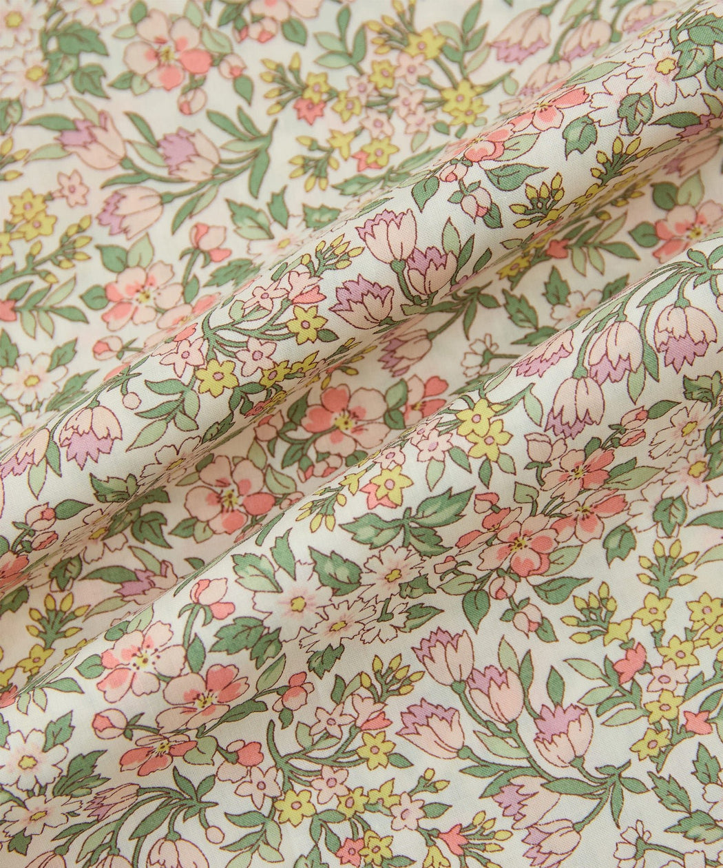 繊細な花柄が広がるリバティプリントが印象的なブラウス。柔らかな色使いが、スタイリングに華やかさと上品さを添えます。