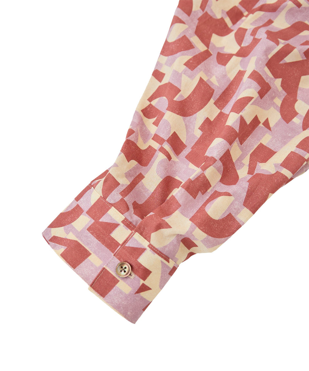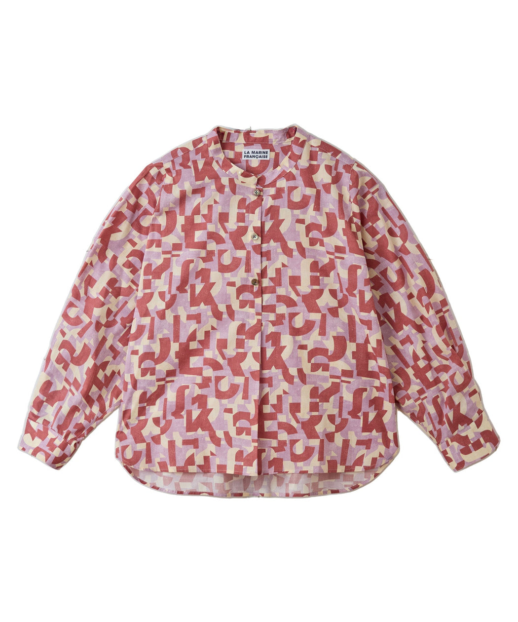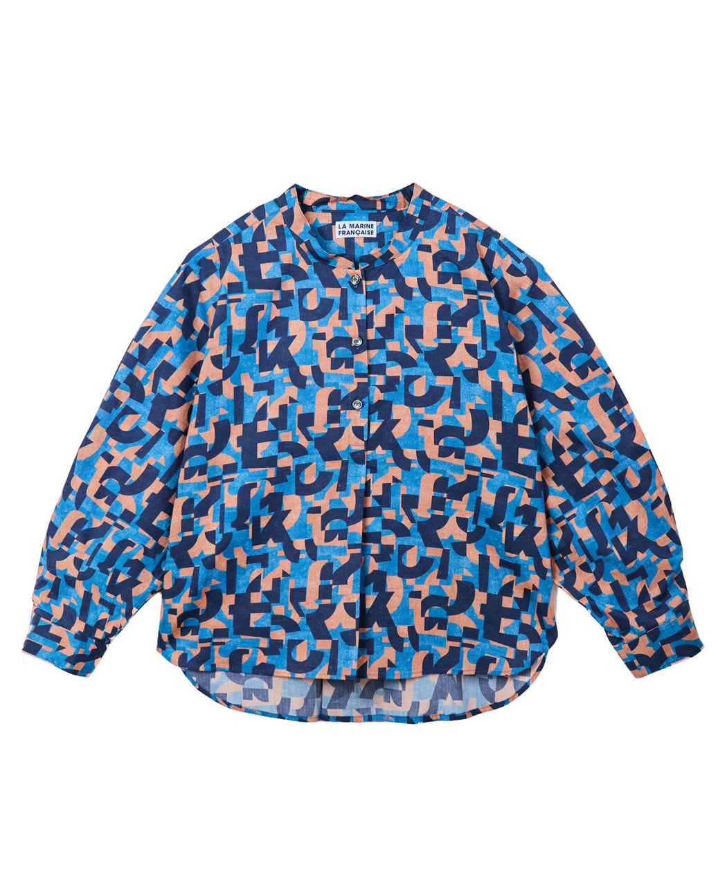 アルファベットモチーフが印象的なリバティプリントを使用したドルマンシャツ。落ち着いた配色の中に遊び心を感じるデザインで、スタイリングにさりげないアクセントをプラスします。