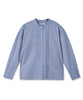 スタンドカラーの立体的なデザインが首元をすっきり見せてくれる、上品なシャツです。