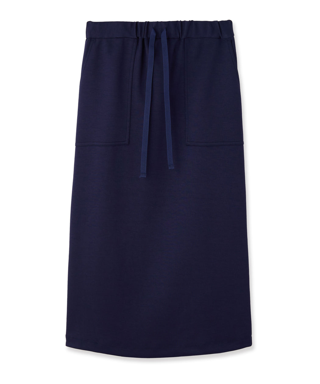 ポケットデザインがさりげないアクセントになり、体のラインを拾いすぎずすっきりとした印象を演出します。