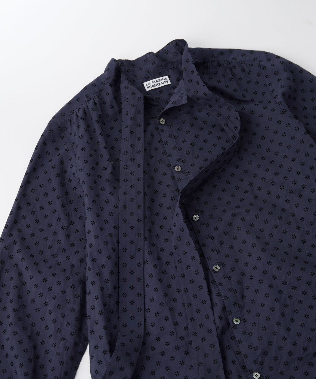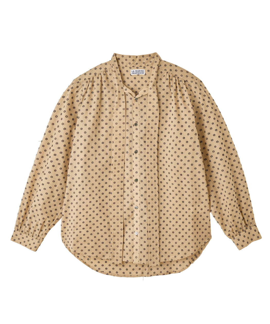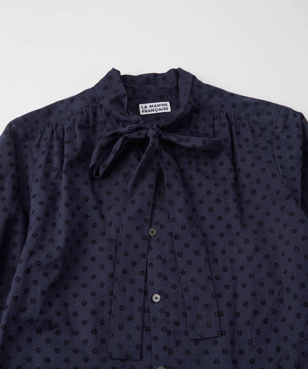 マリン フランセーズ別注のフラワーフロッキープリントが目を引くボウタイブラウス。