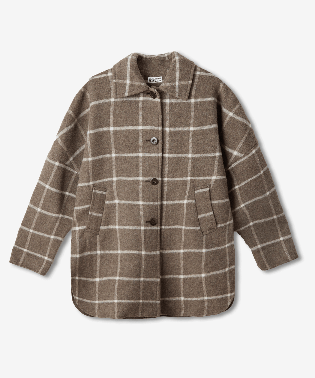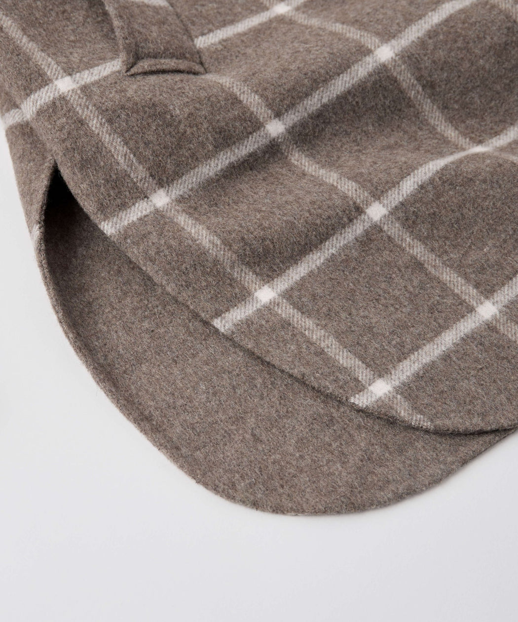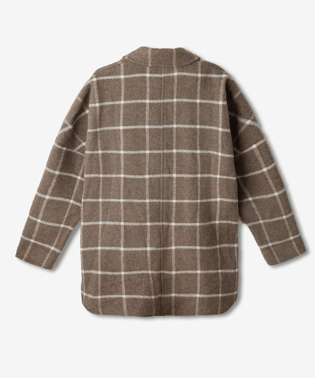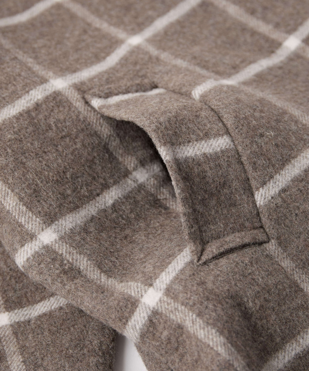 格子チェック柄が上品さを演出しつつ、スタイルのアクセントになるミドル丈コート。