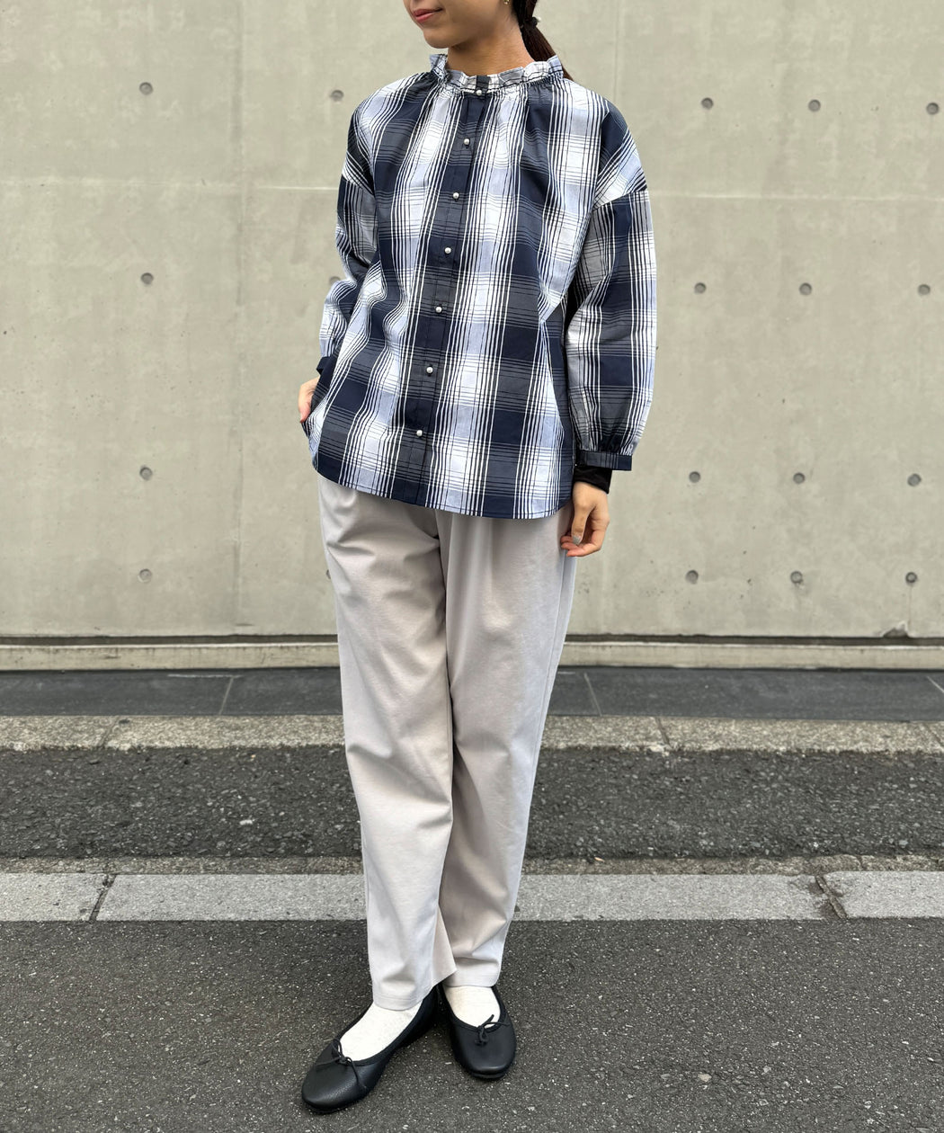 タックディテールがさりげなく入り裾にかけてテーパーしている綺麗なシルエットがポイント。