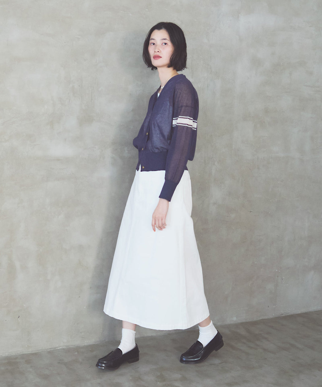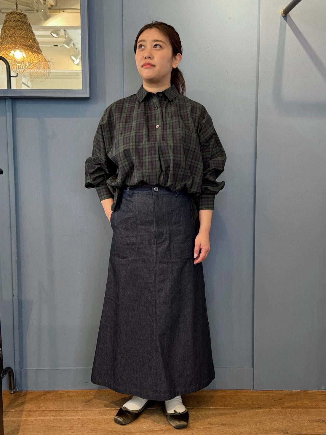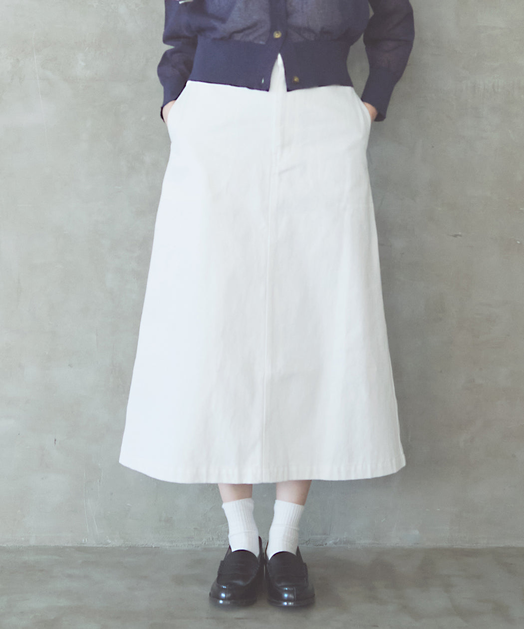パンツ派の方にもおすすめしたい、洗練されたマニッシュな雰囲気のデニムスカートです。