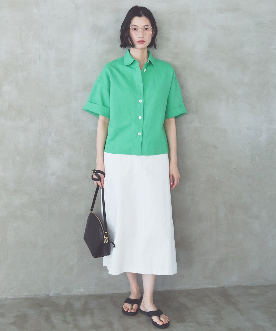 ブラウスやシャツをインして、足元はローファーやフラットシューズを合わせると上品な印象に。