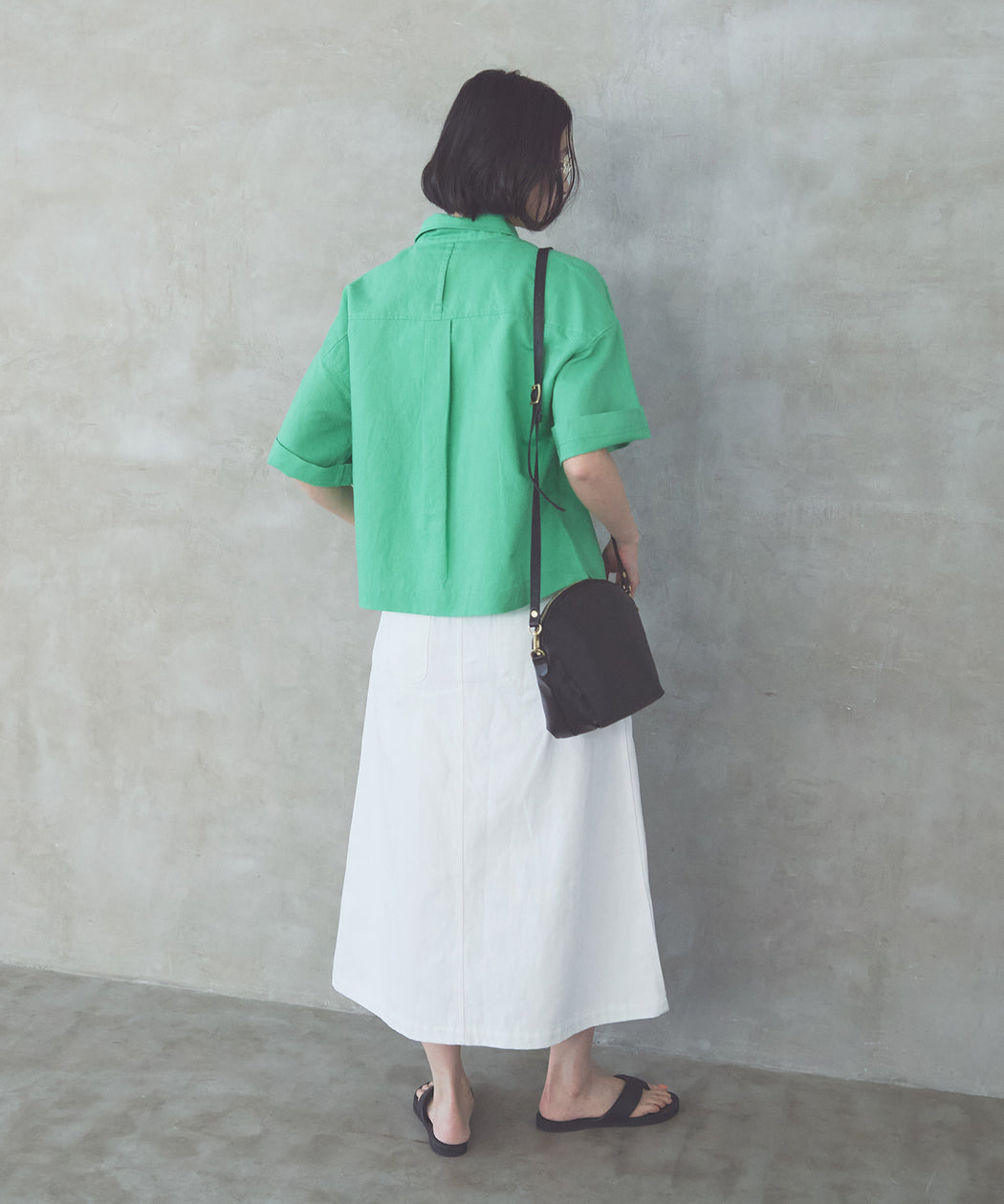マニッシュな印象をプラスするデニムトラペーズスカート