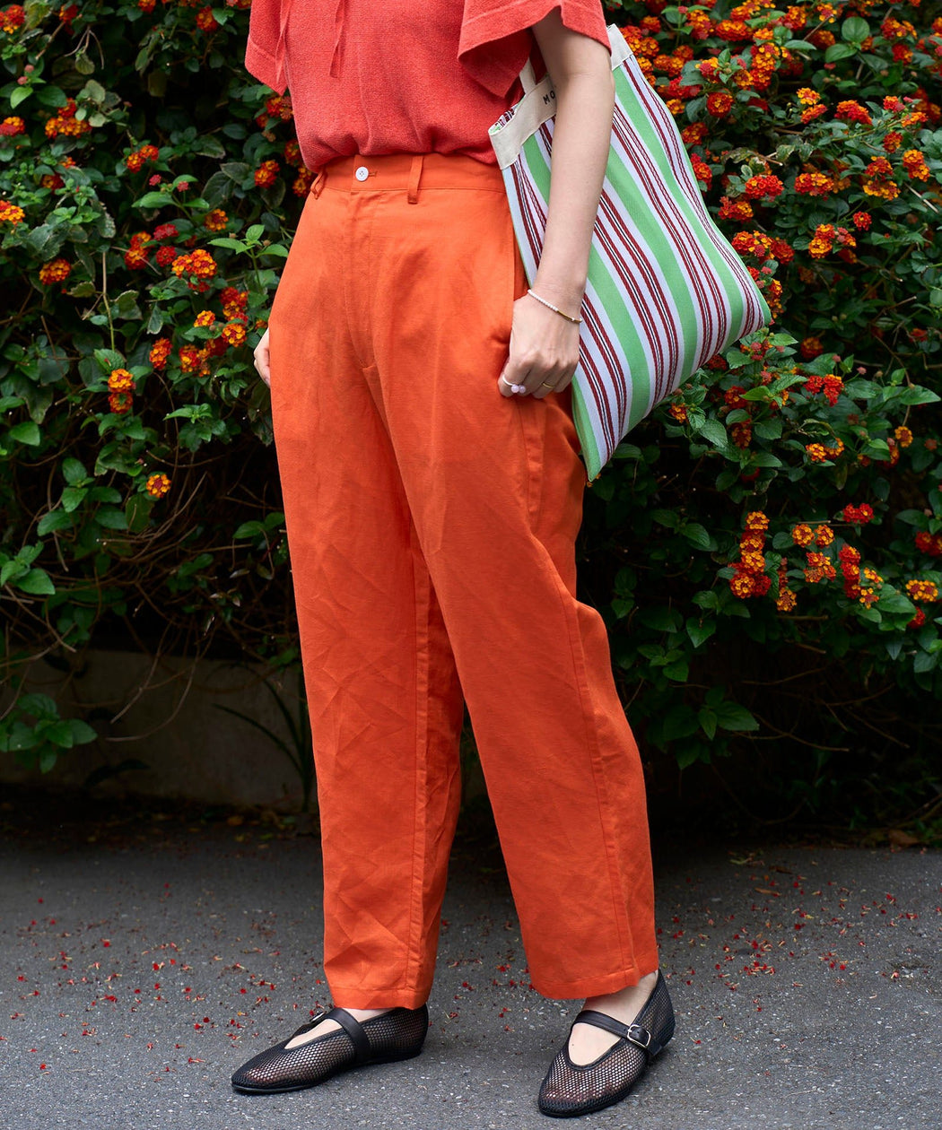 リネンレーヨン素材を使用した、大人の万能ストレートパンツ