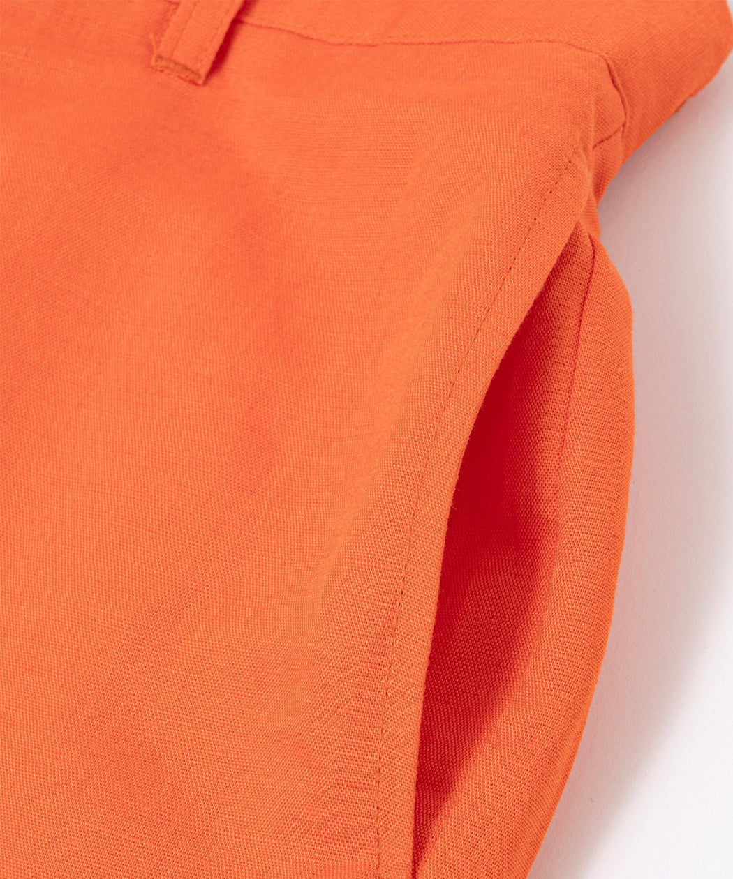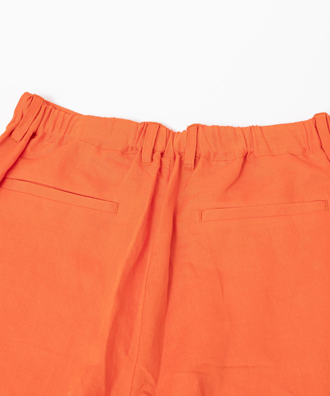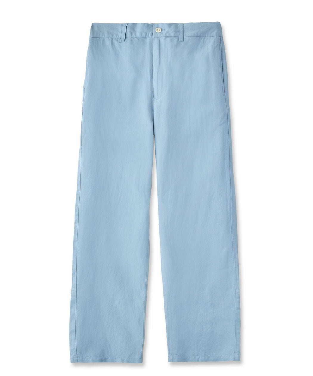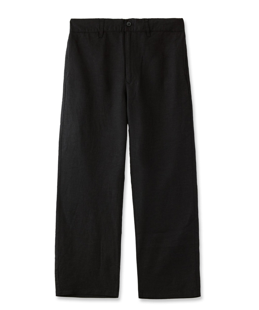 軽やかさと落ち感を兼ね備えた、レーヨン混のリネン素材を使用したストレートパンツ。