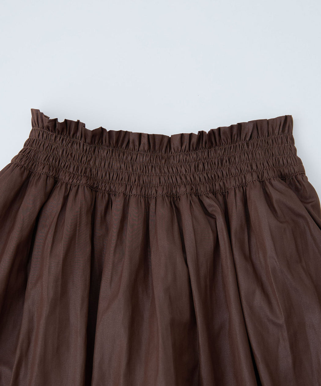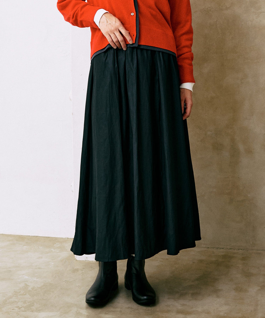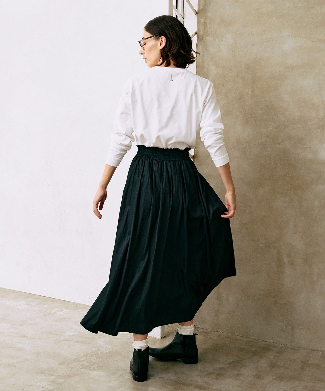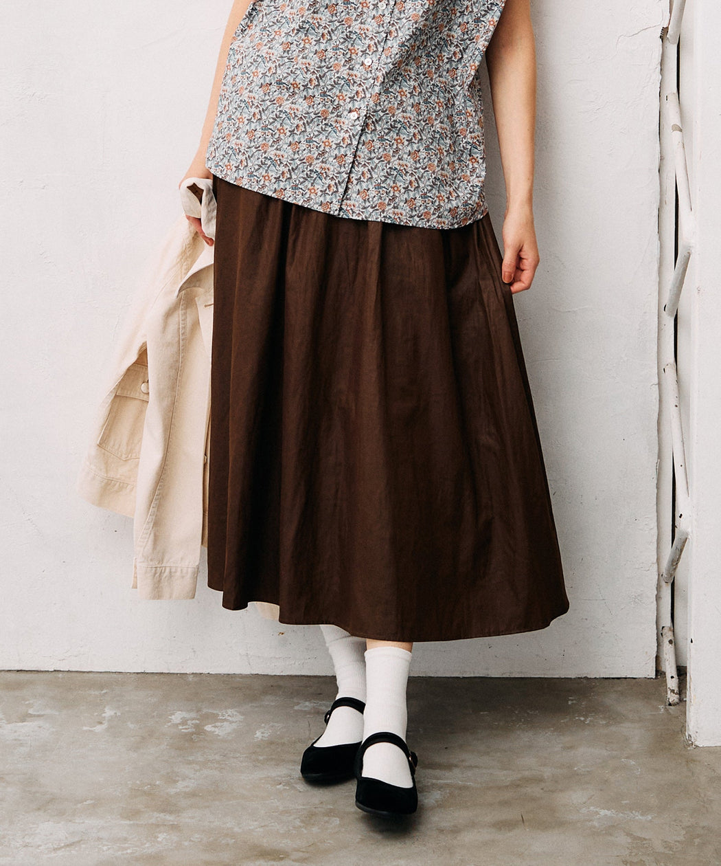 イン・アウトどちらでも楽しめる大人のシャーリングスカート