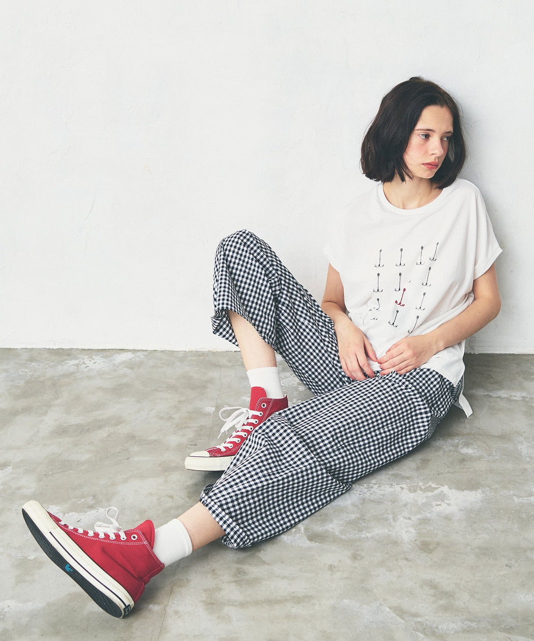コーデに季節感とアクセントをプラスしてくれる、ギンガムチェック柄のコットンパンツ。