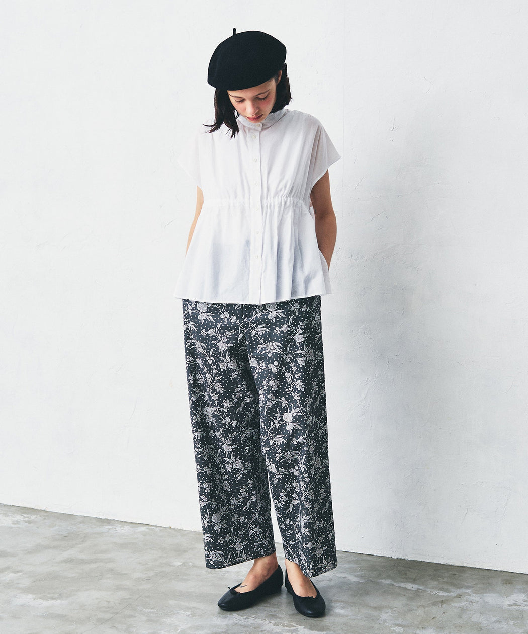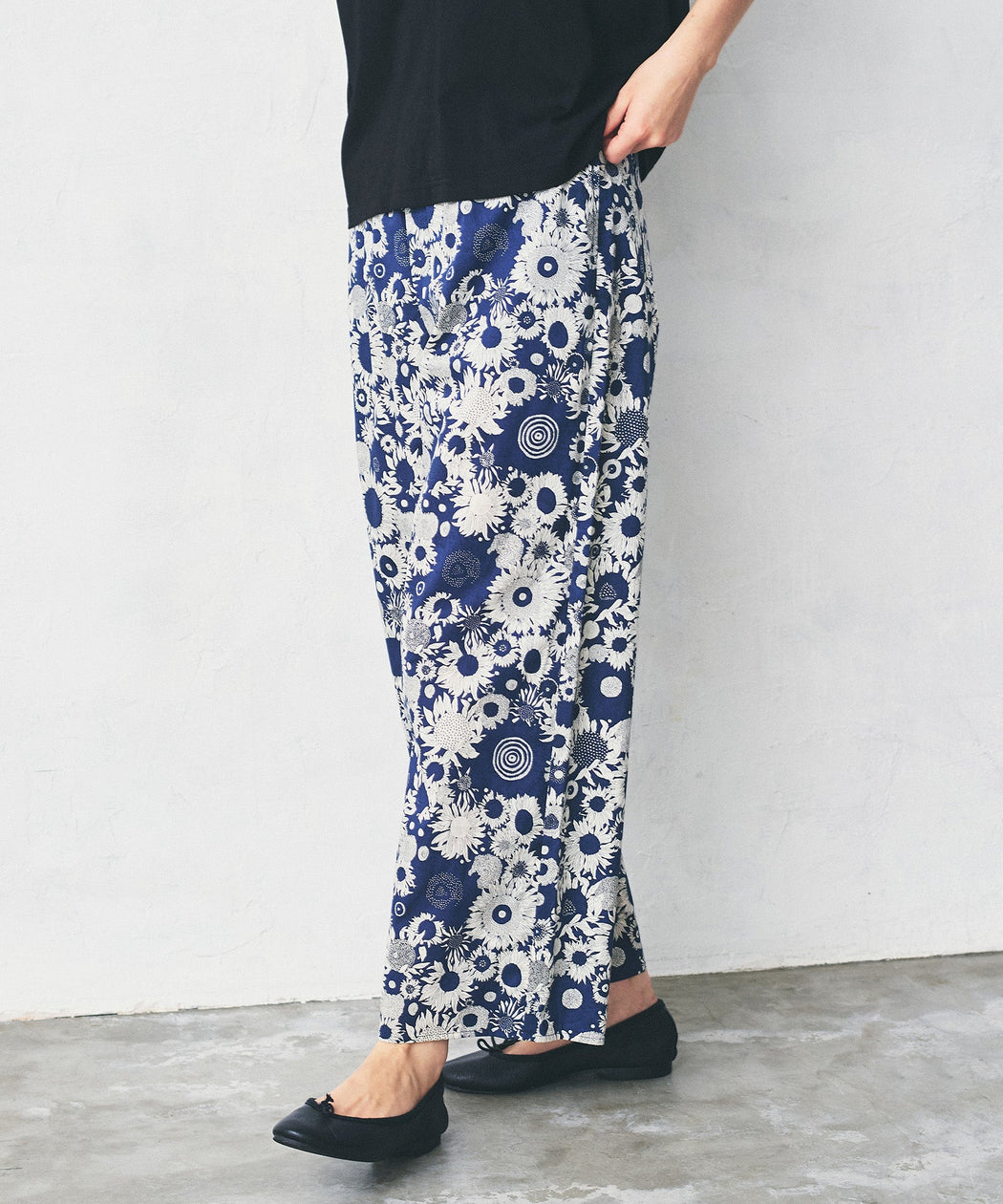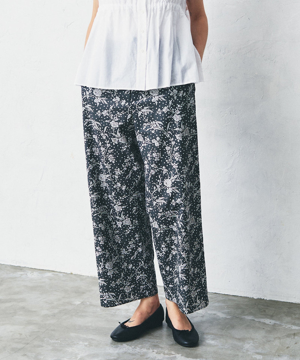 華やかさと上品さを兼ね備えた、リバティプリントのイージーパンツ