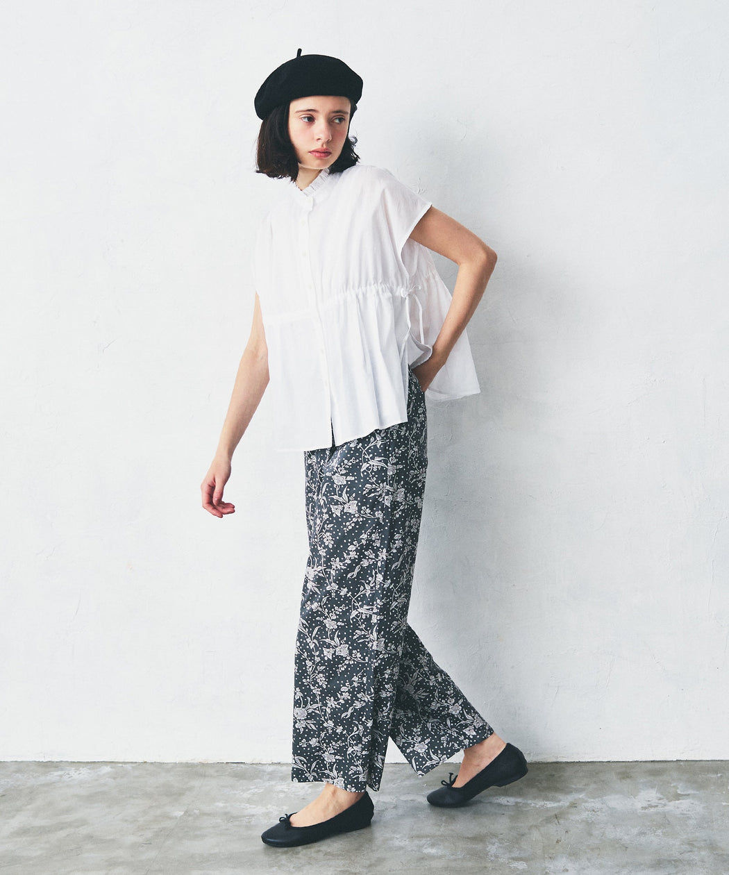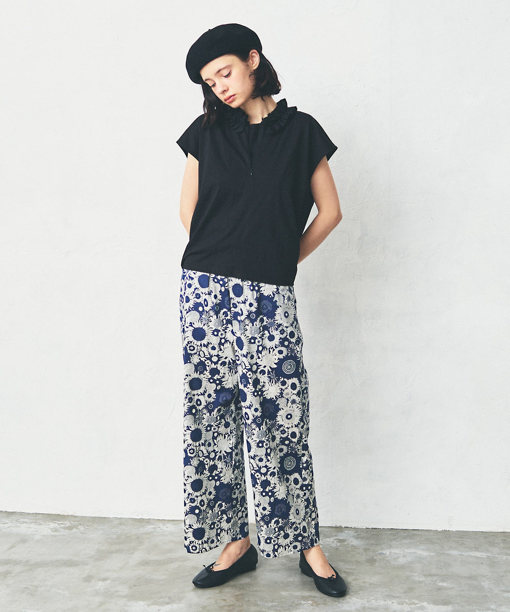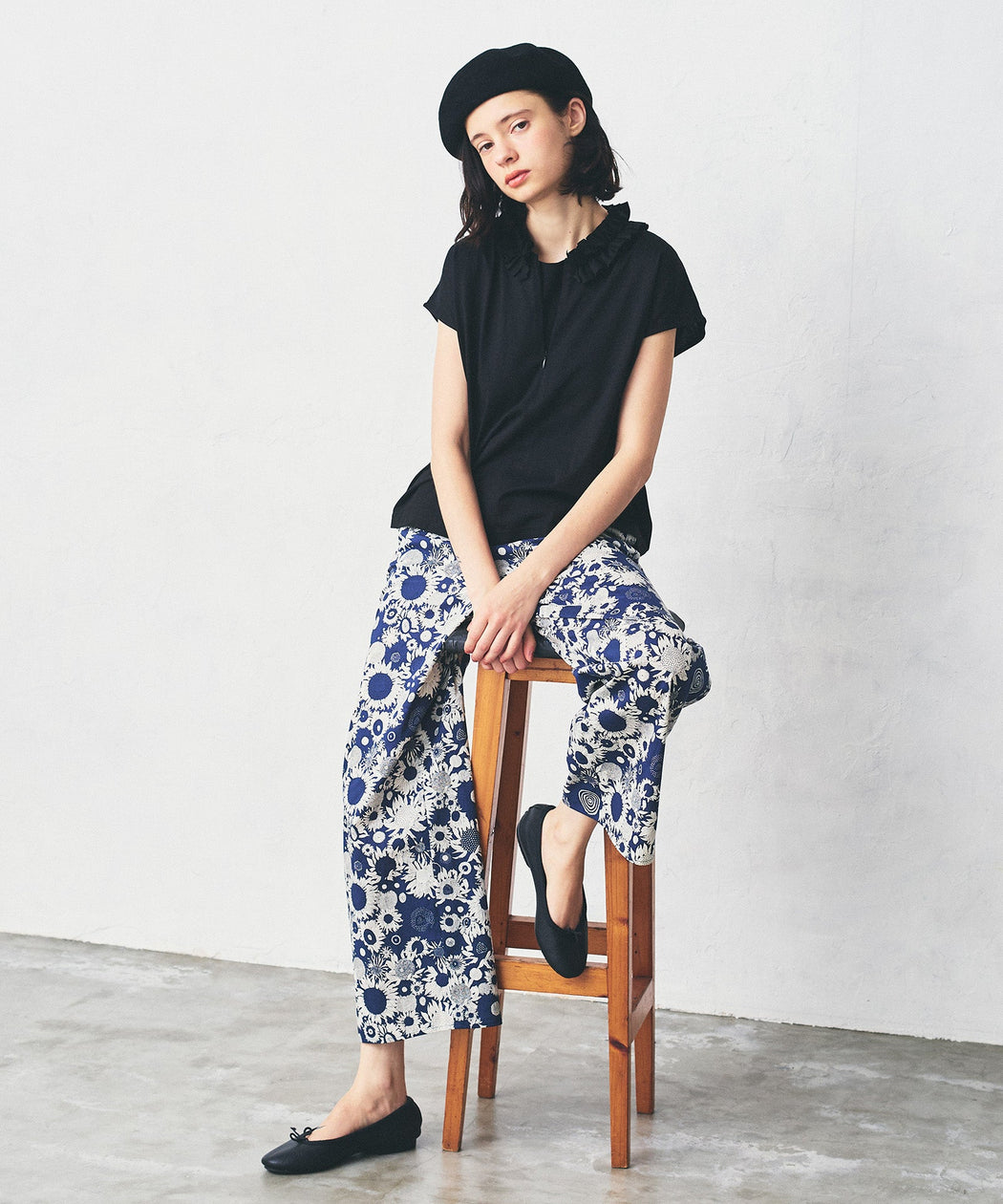 華やかさと上品さを兼ね備えた、リバティプリントのイージーパンツ