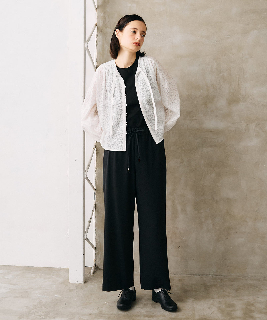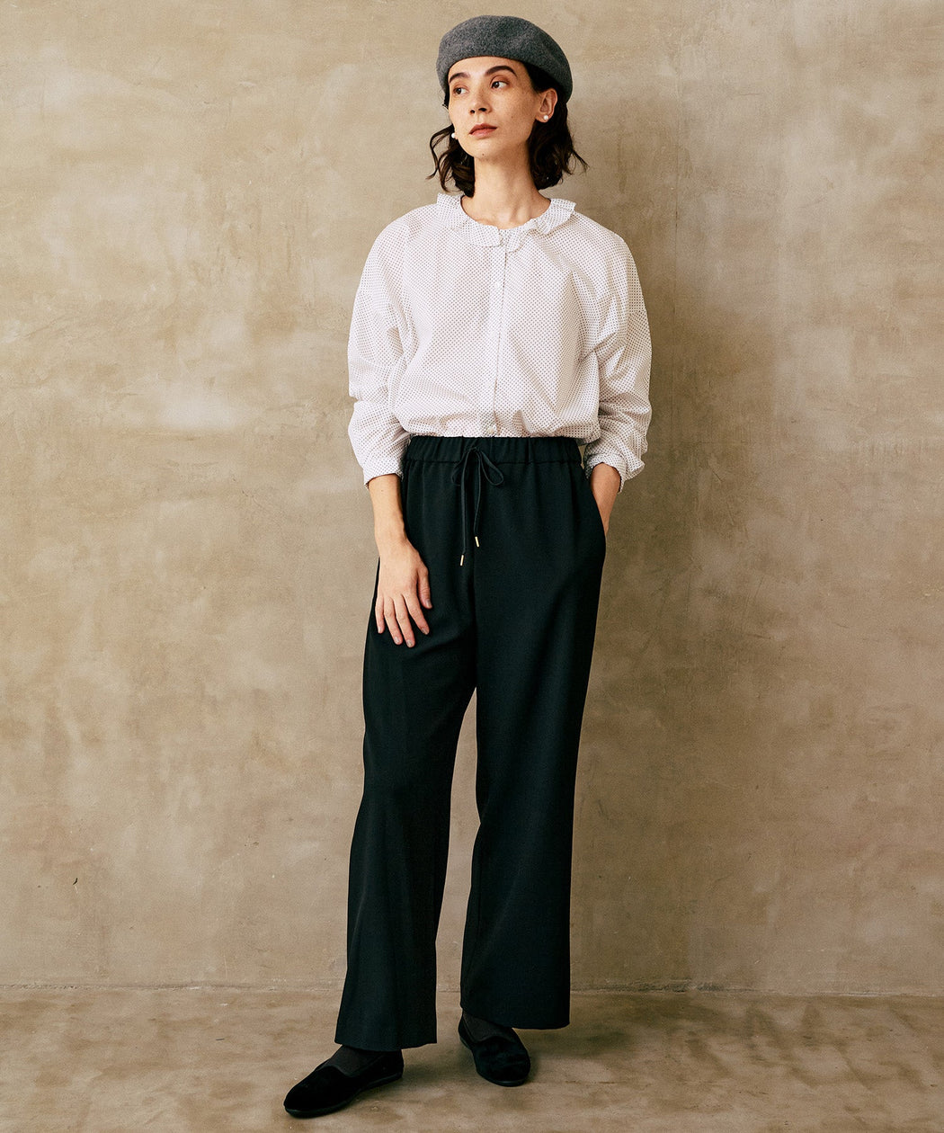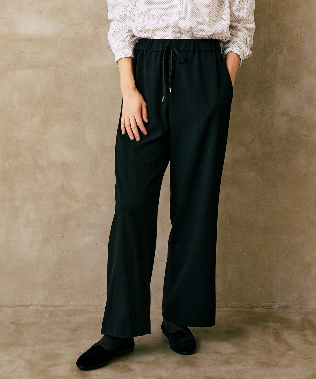 程よい落ち感と適度なとろみ感が魅力のイージーパンツ。