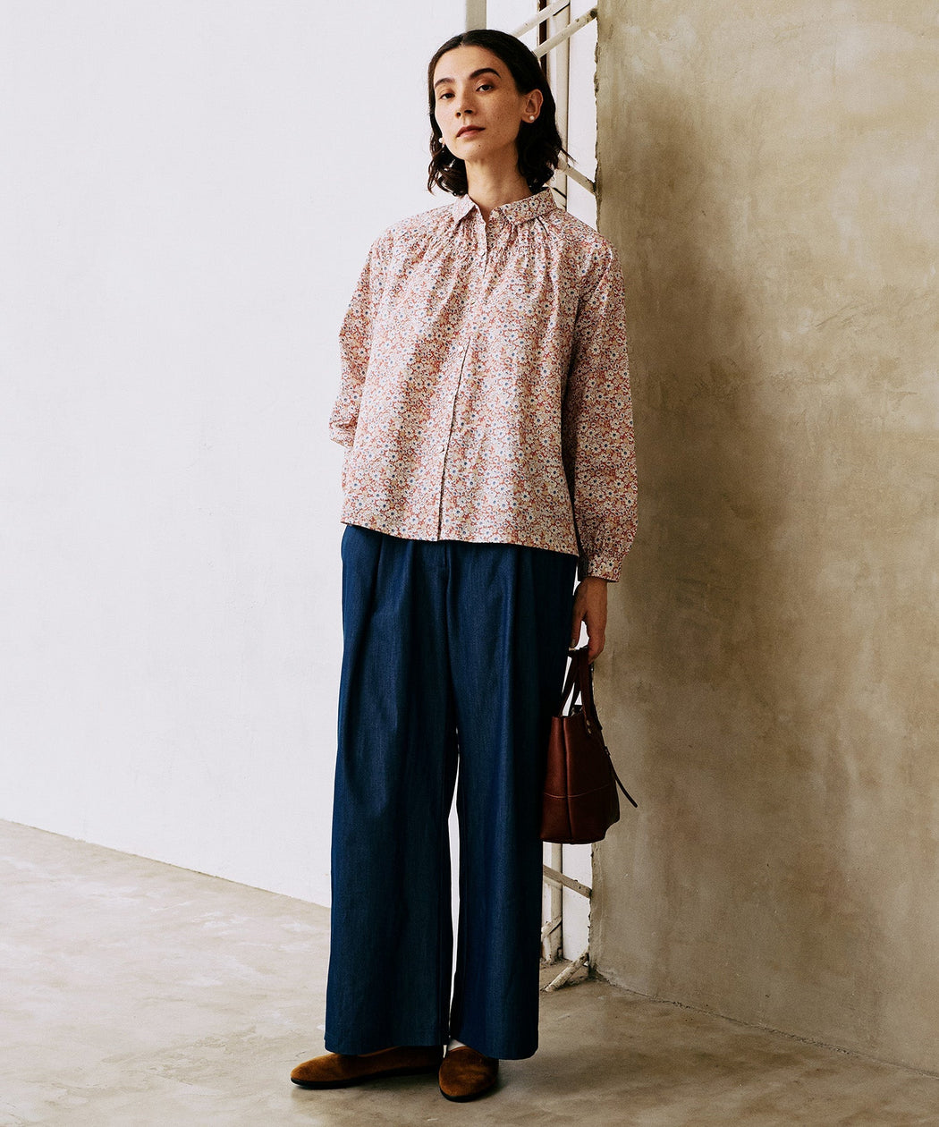 微起毛素材で仕立てたきれいめワイドデニムパンツ