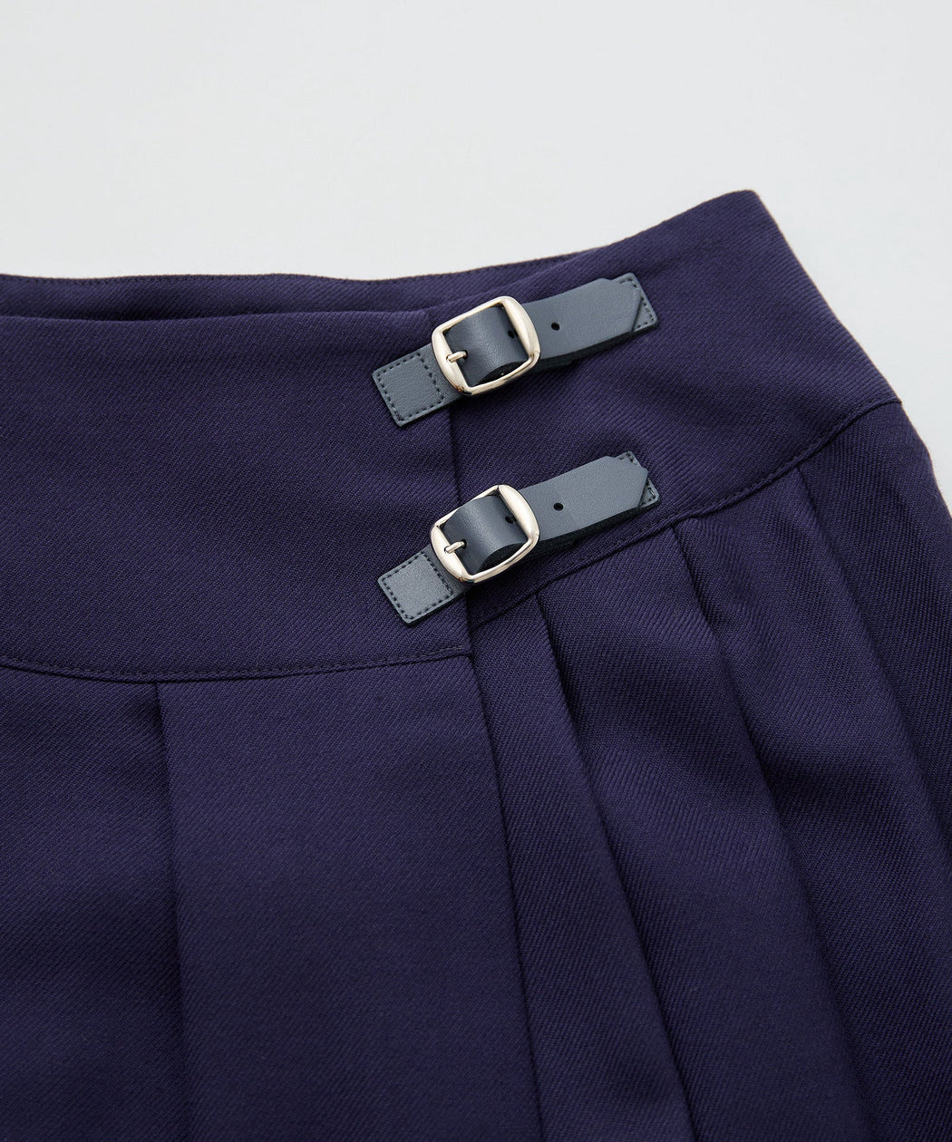 付属の本革レザーベルトでウエストサイズの調整が可能なため、トップスはインでもアウトでも美しいバランスで着こなせます。