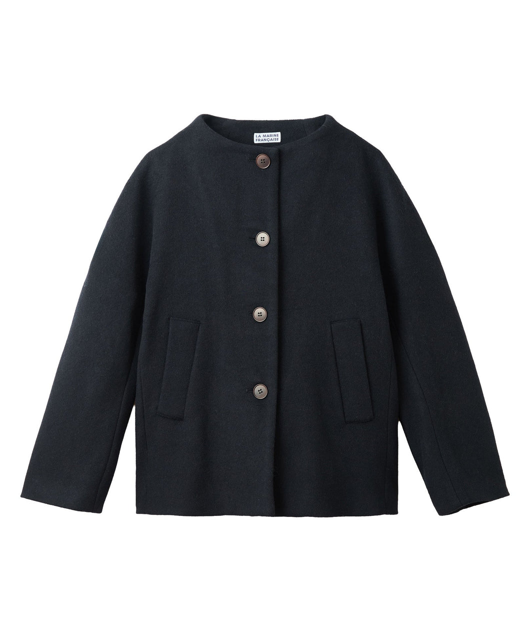 すっきり襟元の軽やかショートコート