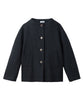 大きめの釦がクラシックなアクセントになり、シンプルながらも印象的なデザインです。 続き袖や後ろベルトなど、細部までこだわった仕立てで動きやすさも◎