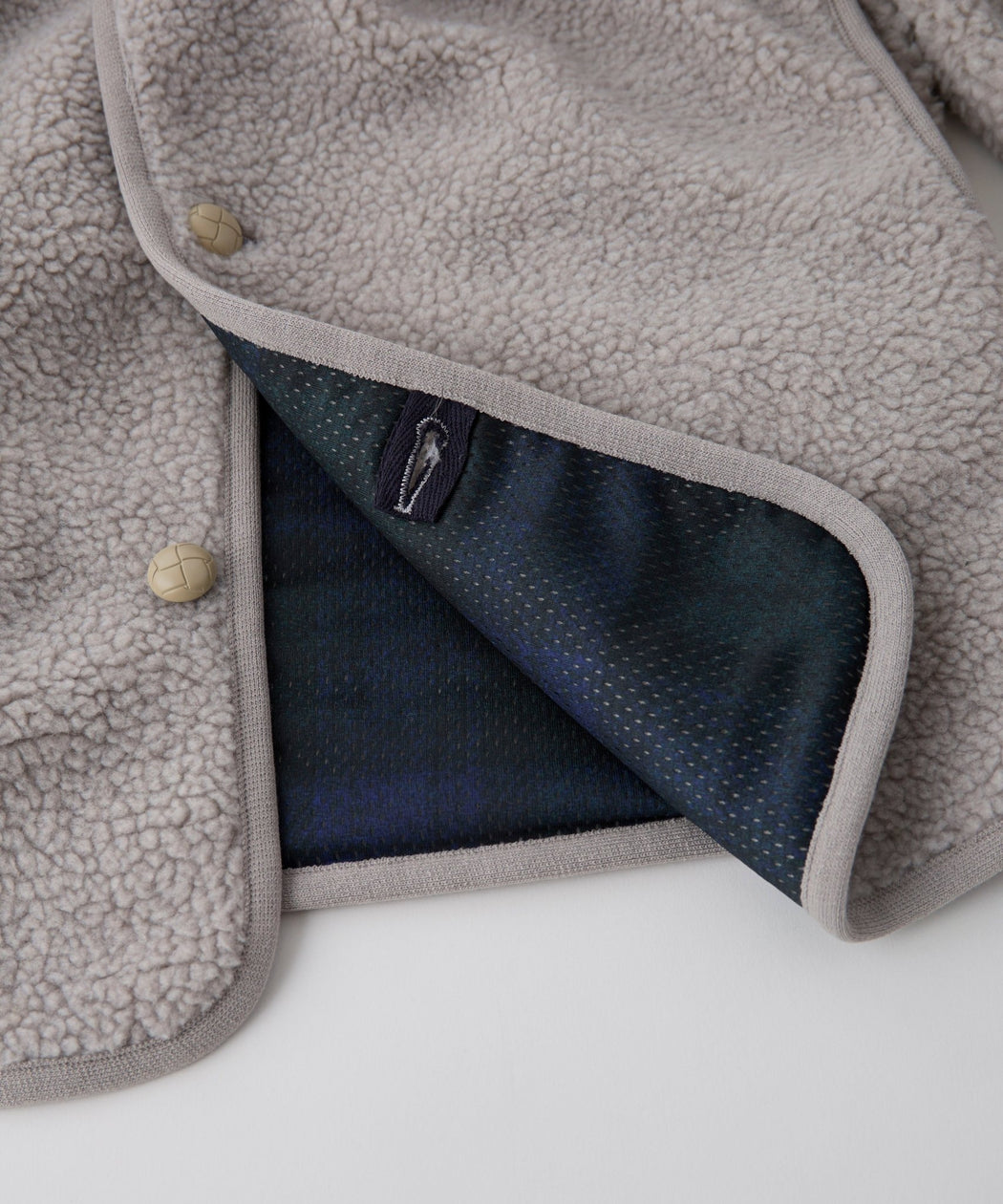 もこもこのボア素材は軽量ながら保温性が高く、見た目にも暖かさを感じられる一枚です。
