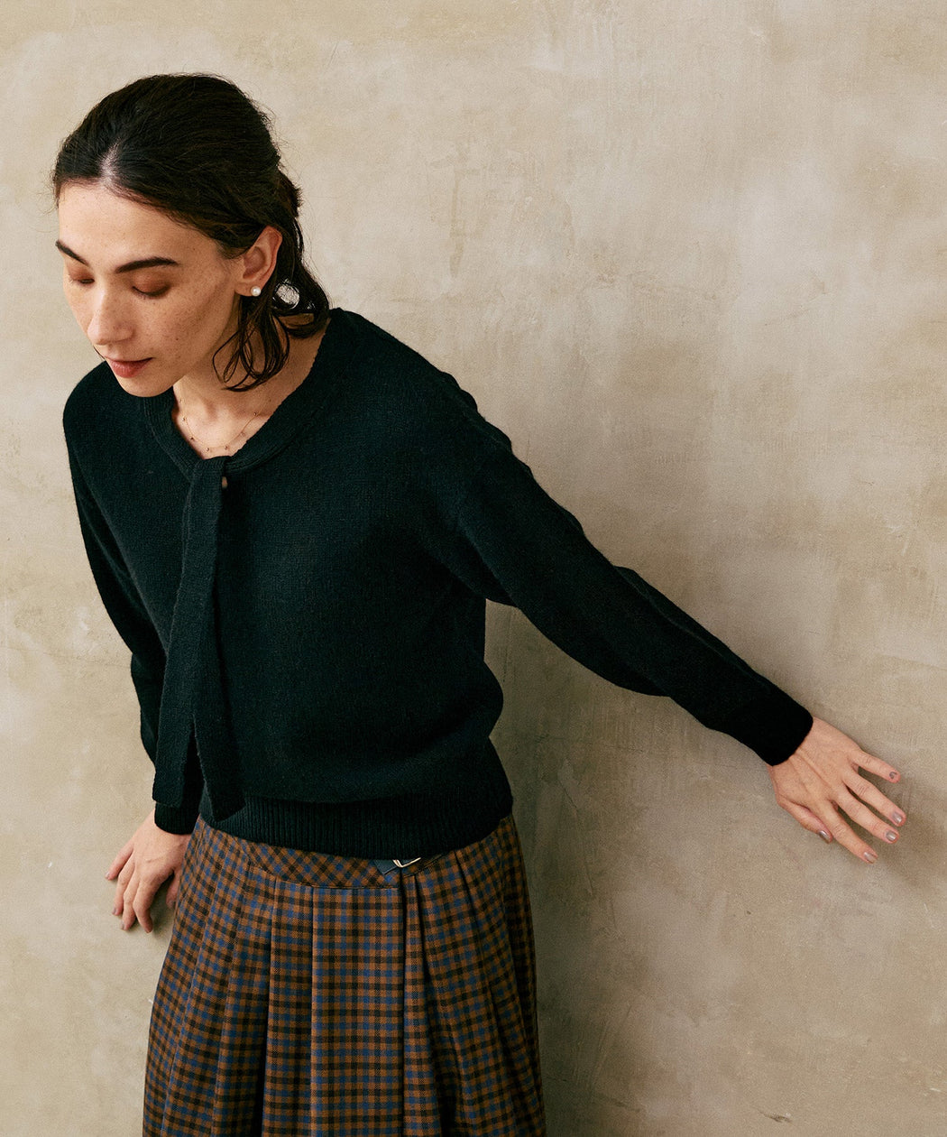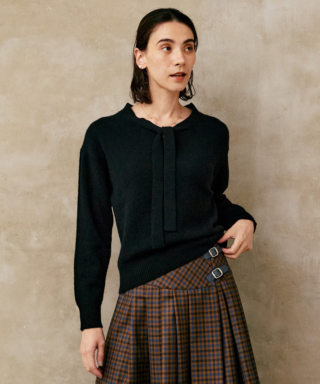 軽やかな着心地のウール100%素材を使用した冬のプルオーバー。 早い時期から取り入れやすく、肌触りも心地よい一枚です。 コンパクトなサイズ感でカジュアルすぎず、胸元のボウタイが程よいアクセントに。 ワイドパンツやスカートと合わせて、女性らしいきれいめカジュアルスタイルが完成します。