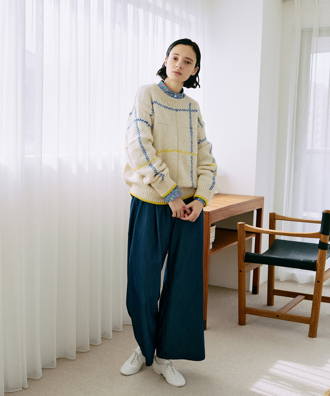 遊び心のある配色ラインが表情豊かなアルパカニット