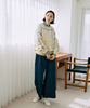襟・袖・裾に入った配色ラインがアクセントになり、カジュアルながらも上品な印象です。