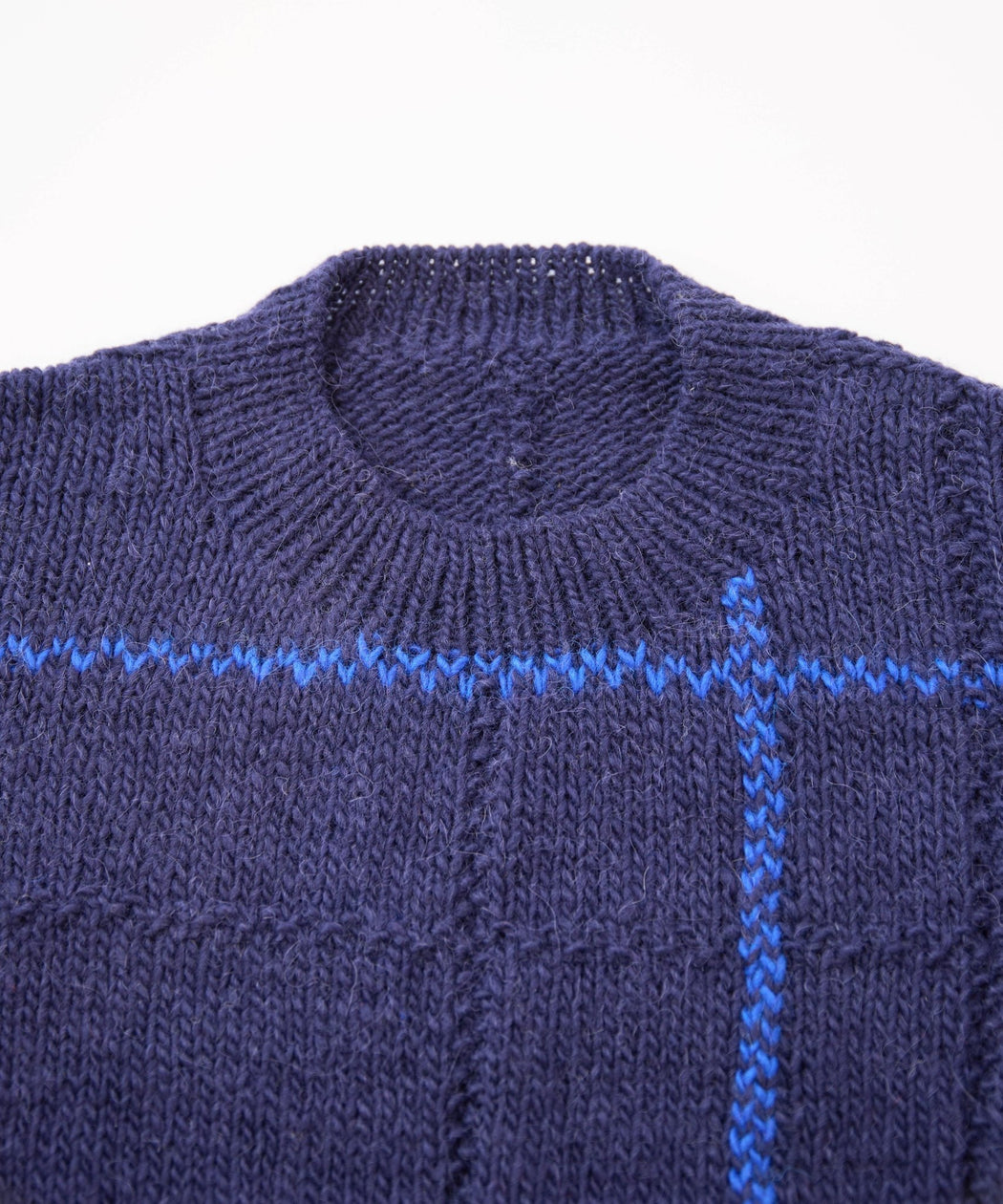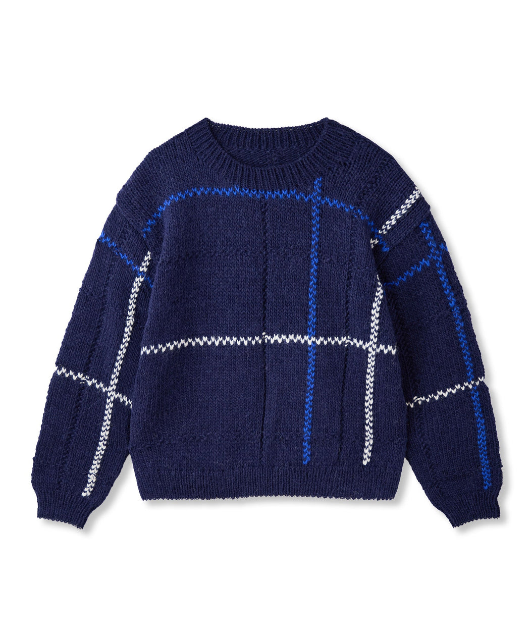 ざっくりと手編みで仕上げた、アルパカウールのクルーネックプルオーバー。