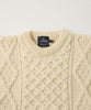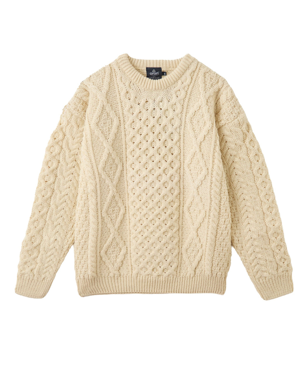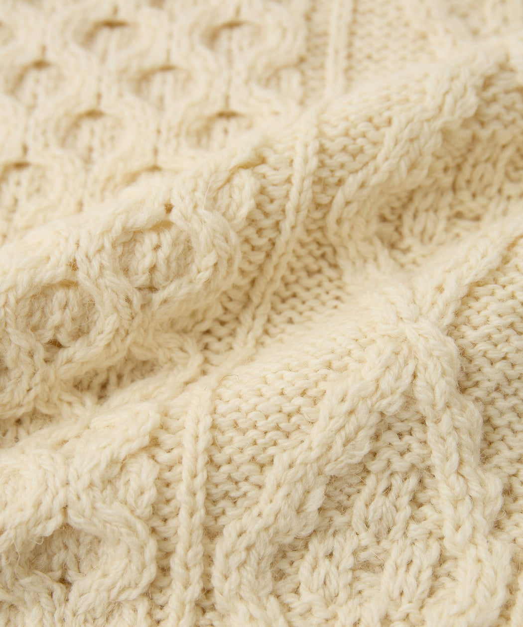 数種類のアラン模様のパターンを組み合わせてデザインされた定番ニットです。