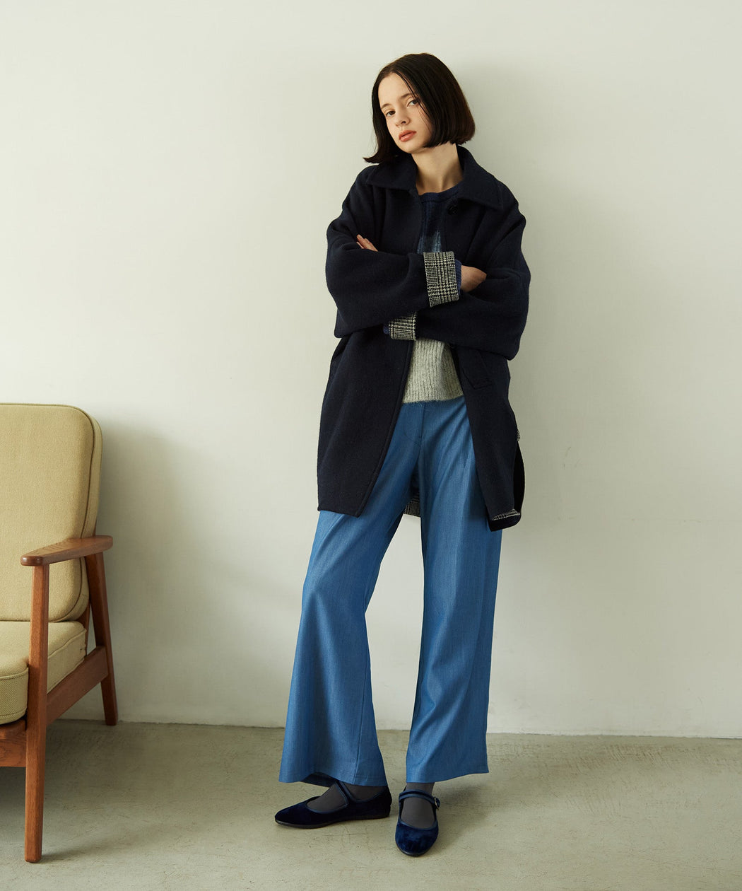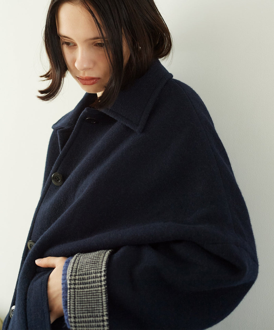 イタリアLATORRE社の先染め配色リバー素材を使用したミドル丈コート。