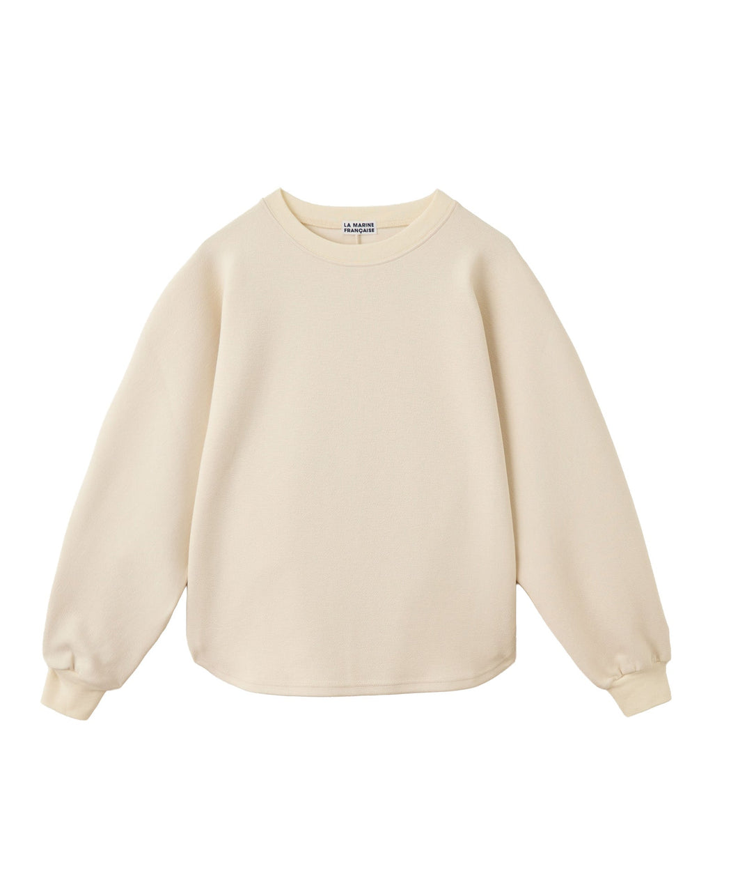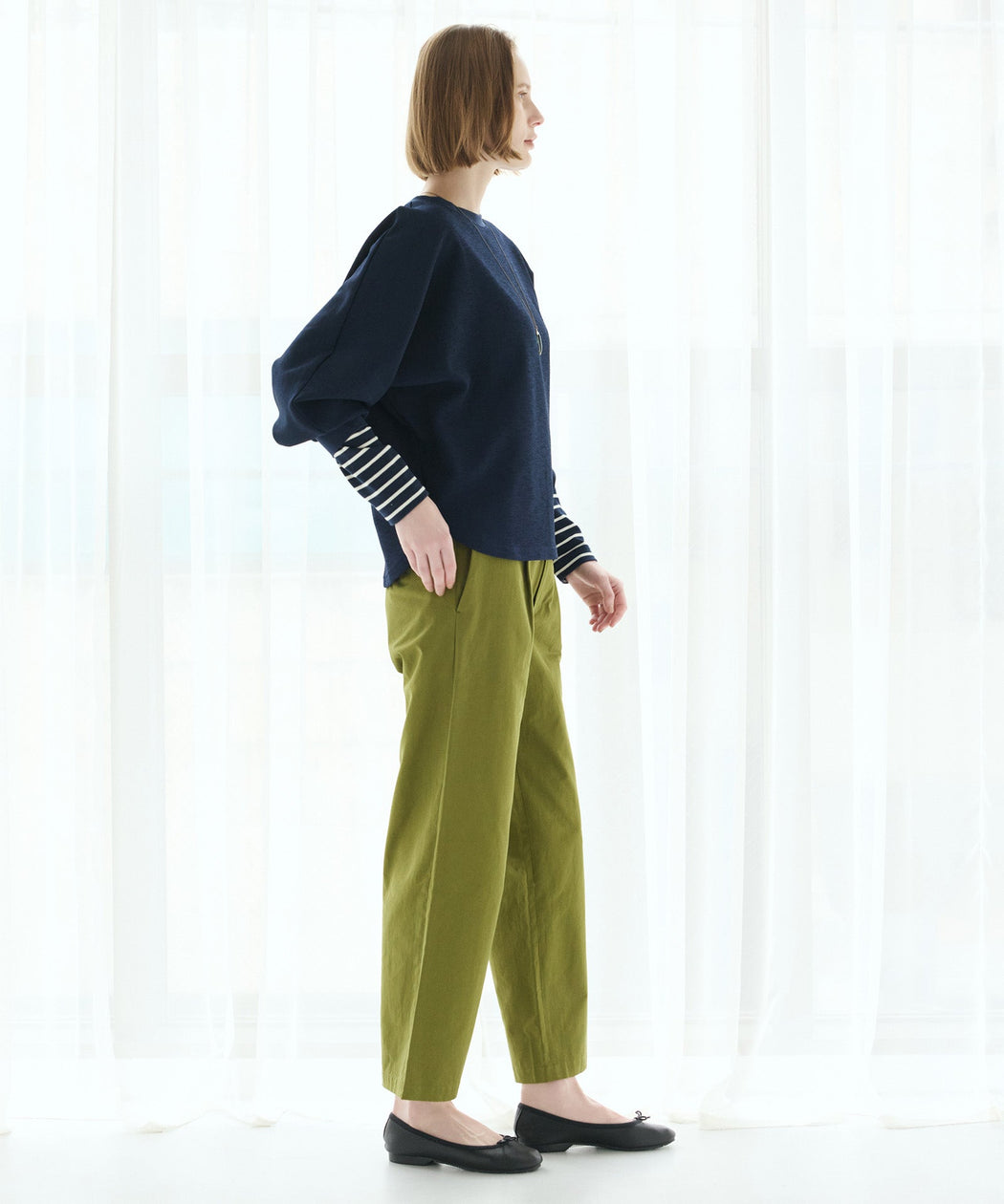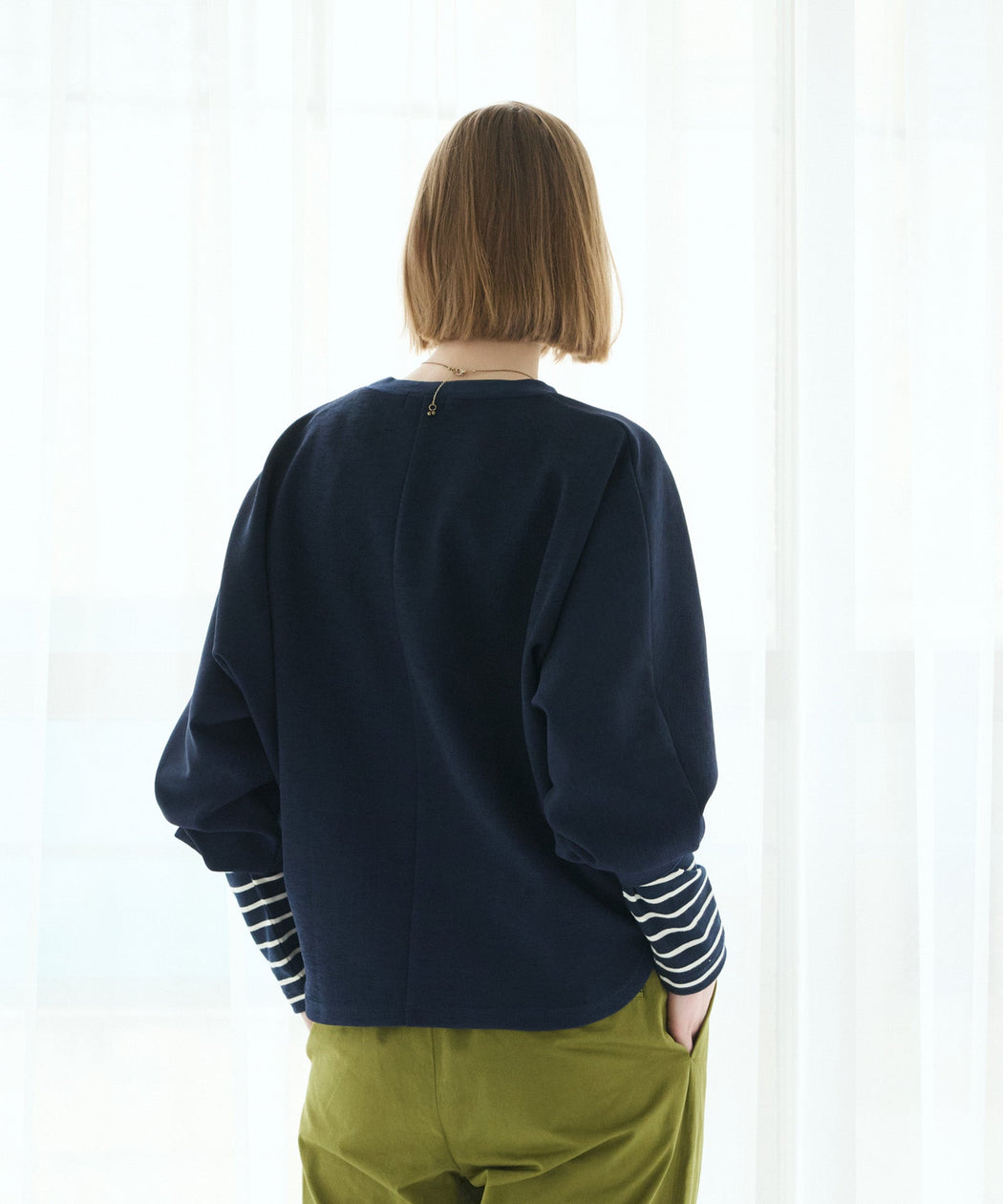 ドルマンスリーブとラウンドヘムデザインが一枚でもこなれた雰囲気に。