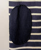 身頃はナチュラルな配色のボーダー、肘部分にはボーダーと同色のエルボーパッチを配し、カジュアルな中にも引き締まった印象をプラス。
