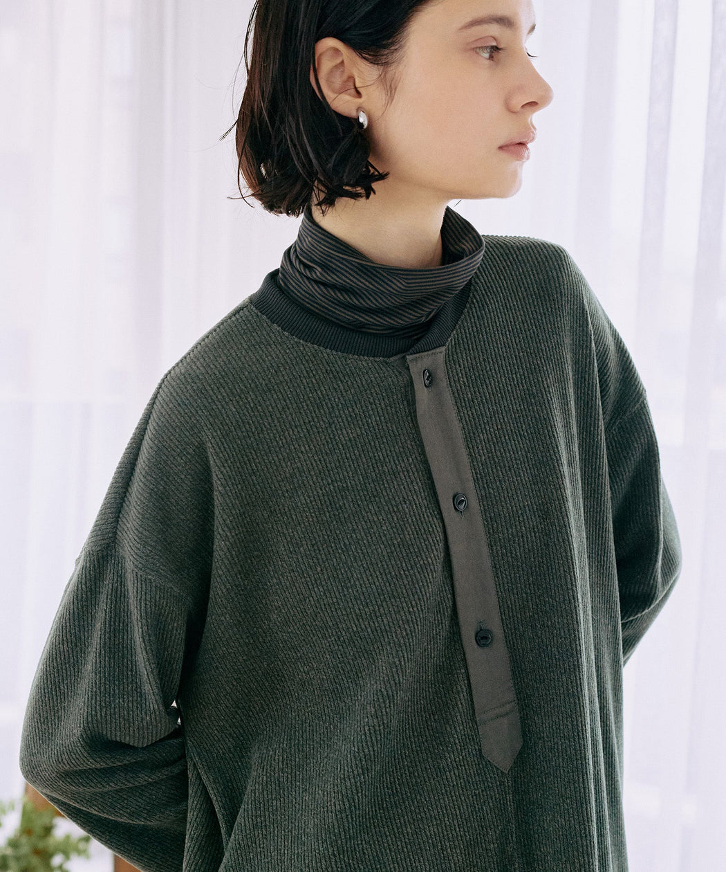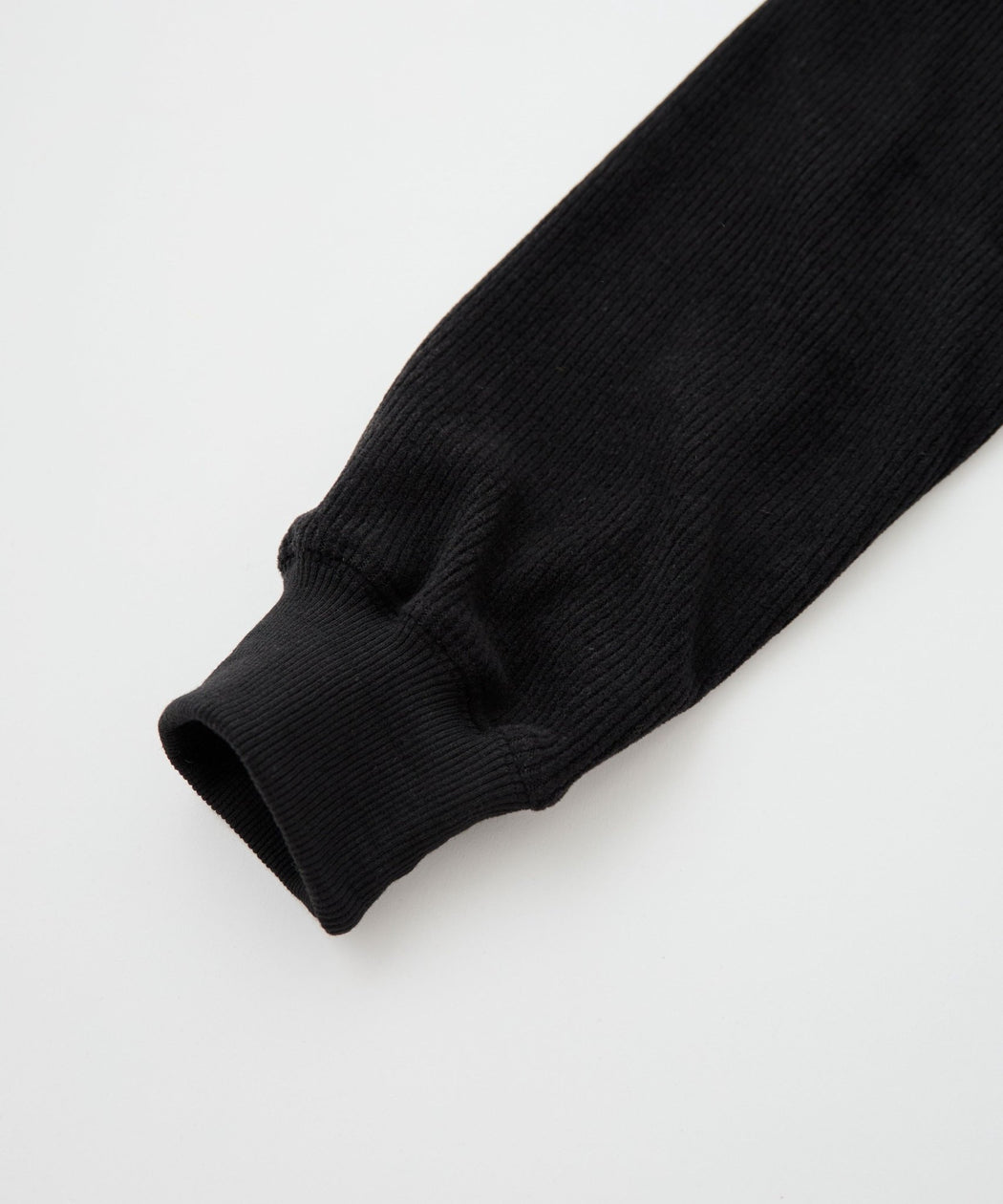 襟元の開きや袖口のリブなど、ベーシックな中にもデザイン性を感じる仕上がりです。