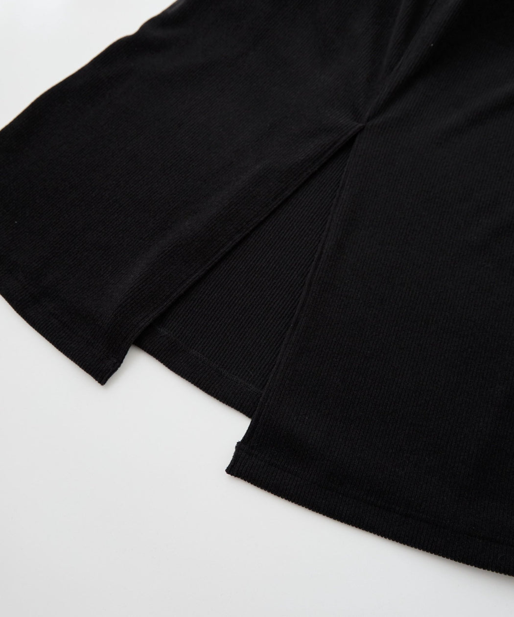 上からニットを重ねてスカート風に着こなせば、レイヤードスタイルが楽しめます。