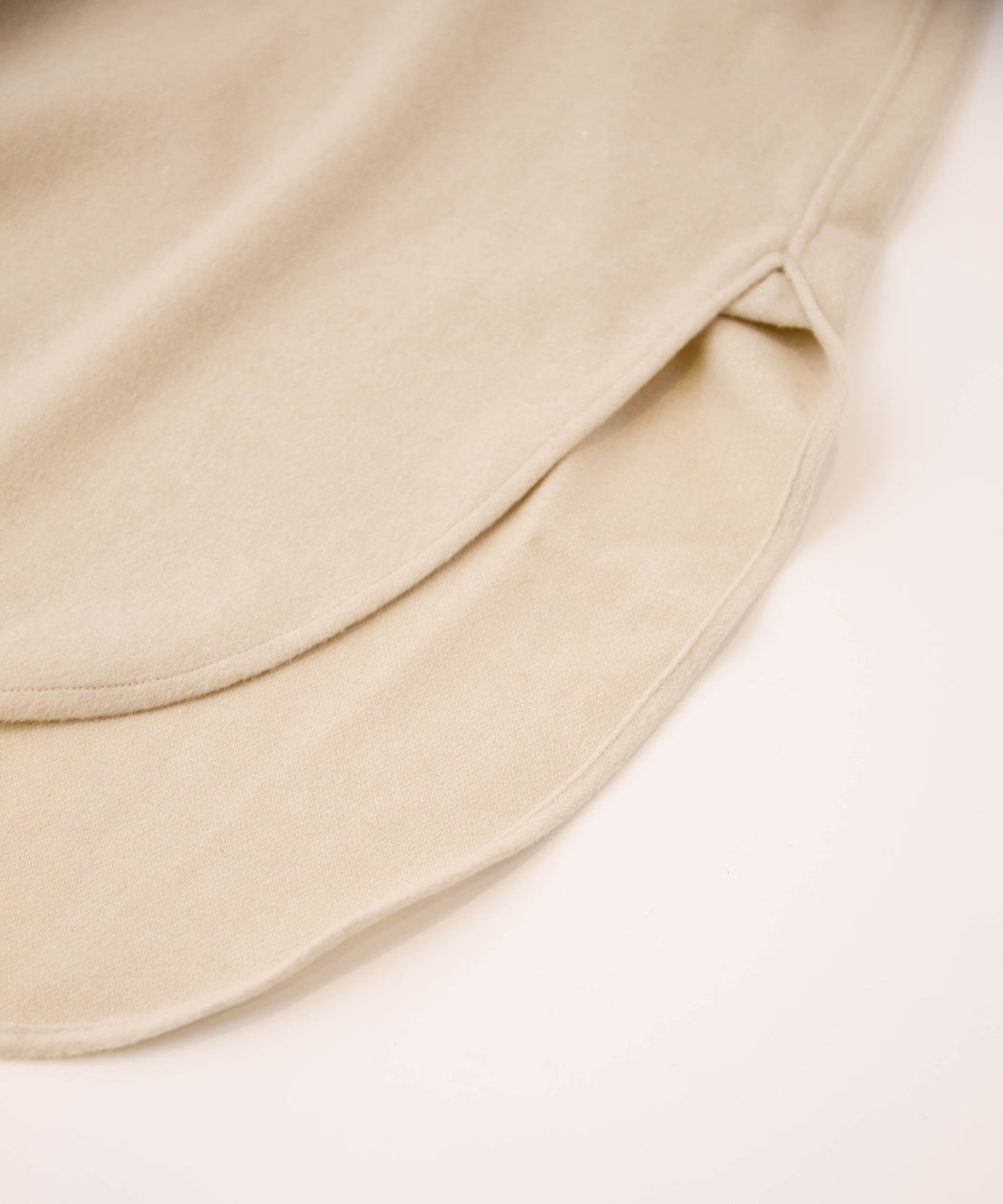 スリムパンツを合わせてチュニック風に着こなすのもおすすめ。