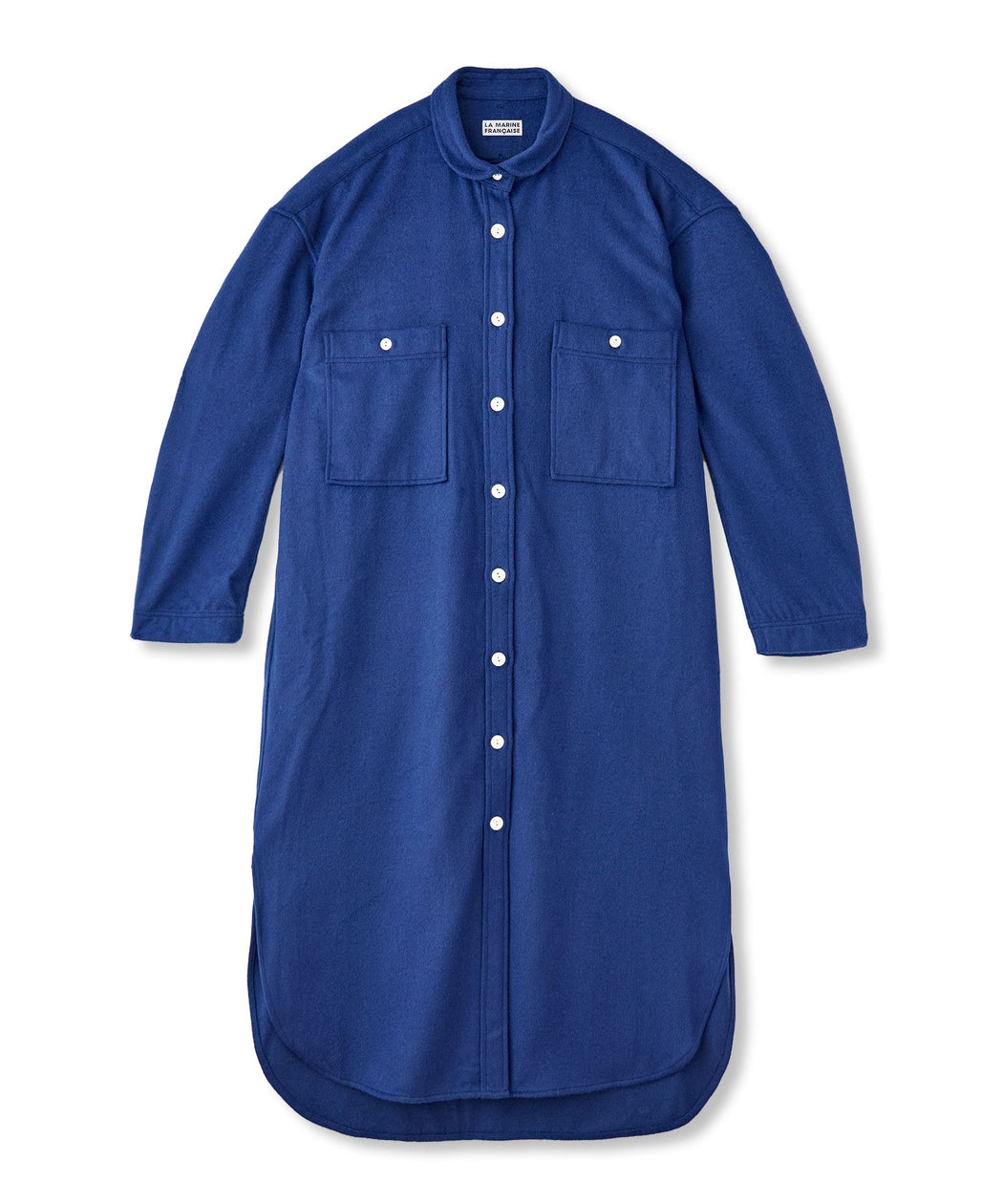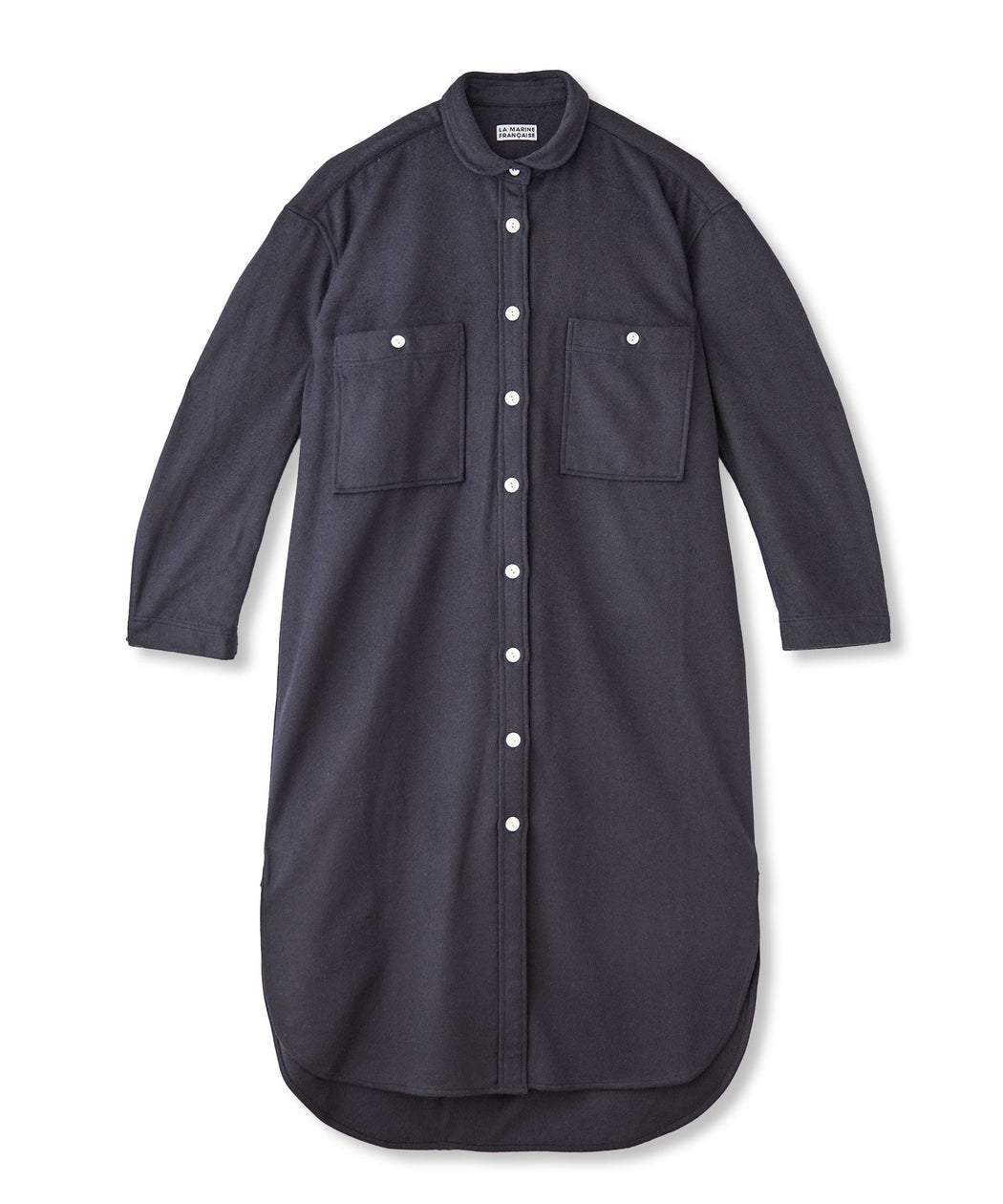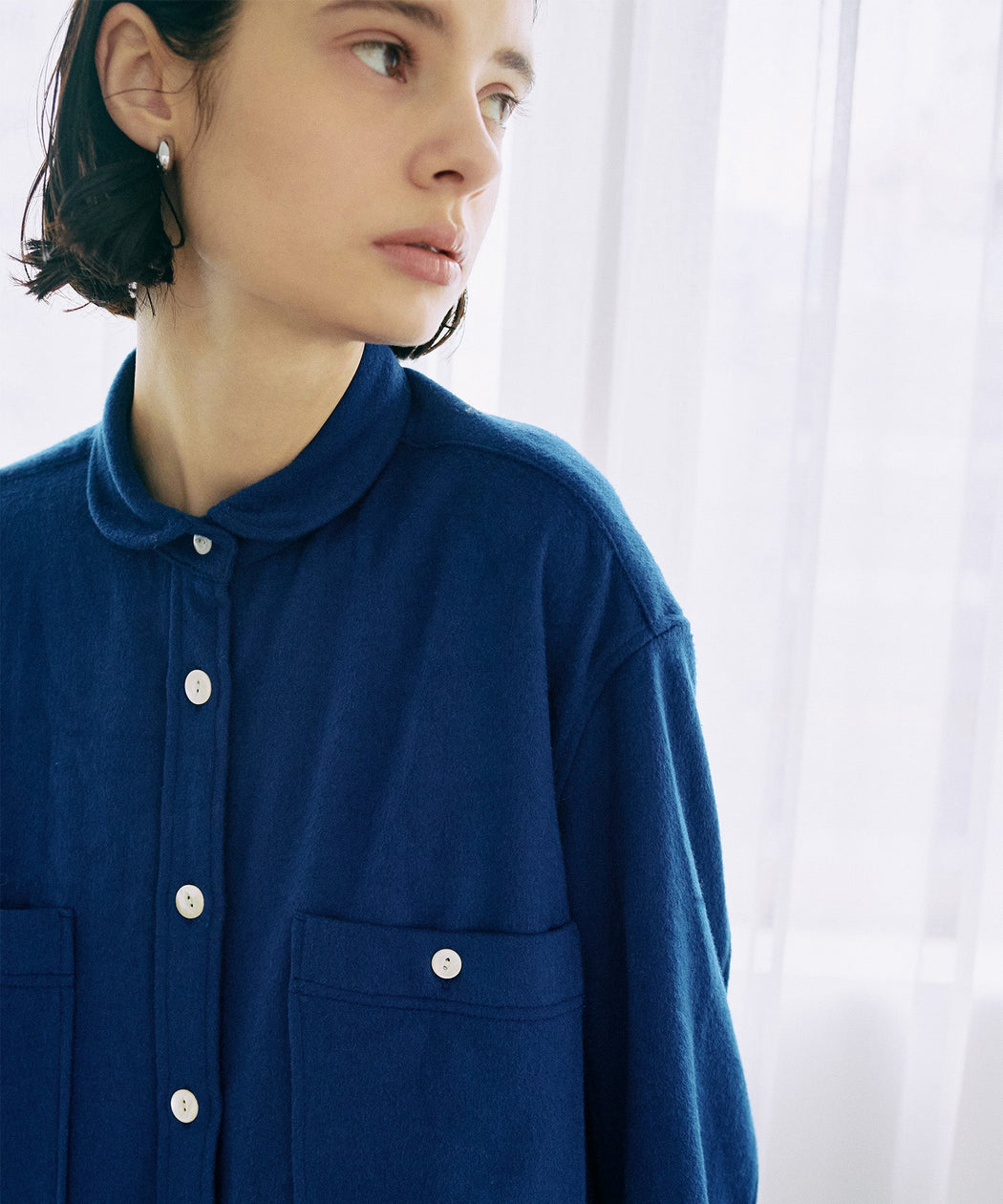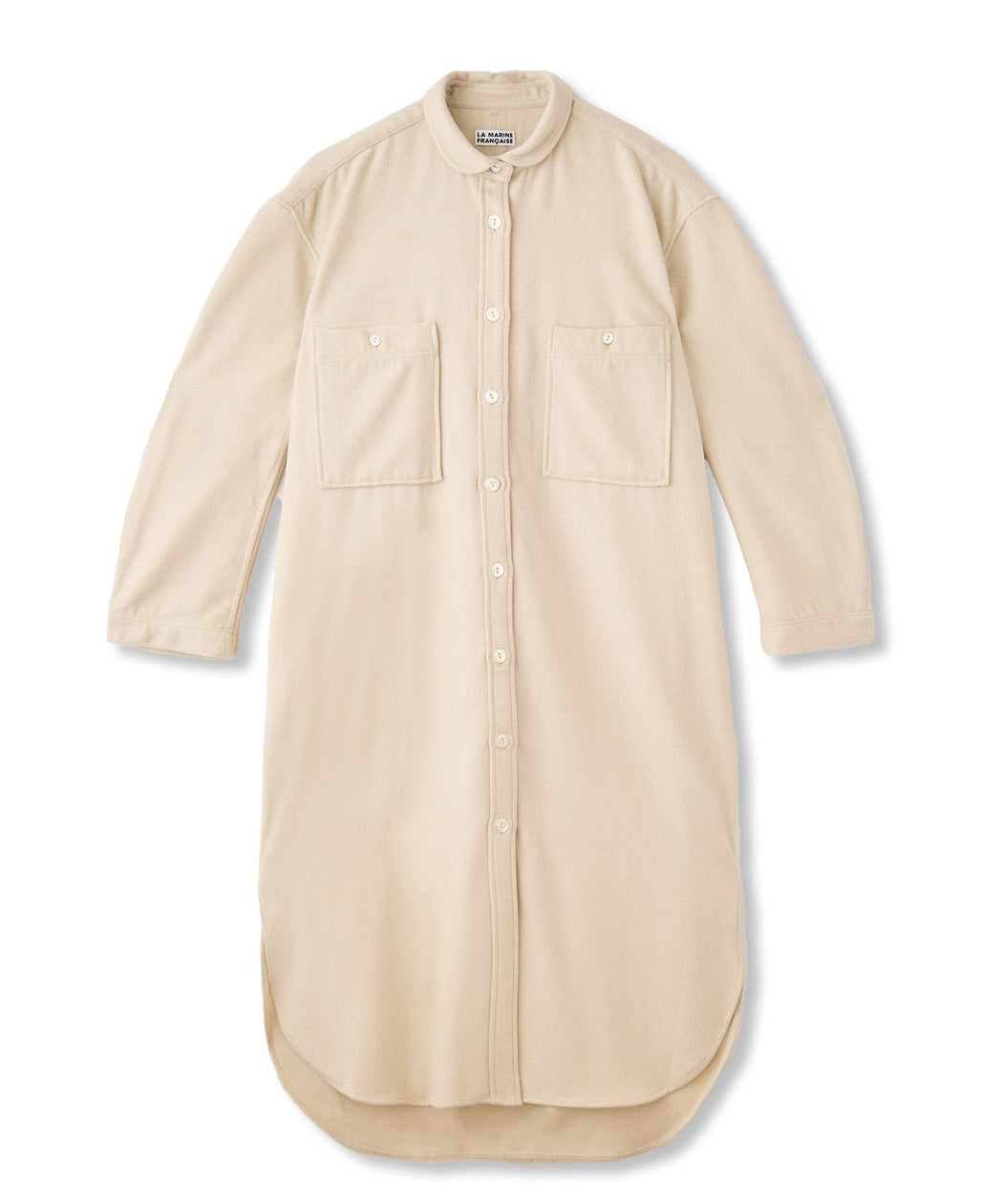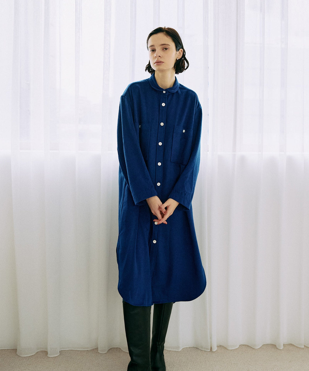 圧縮ウール素材で仕立てた、温かみのあるシャツワンピース。
