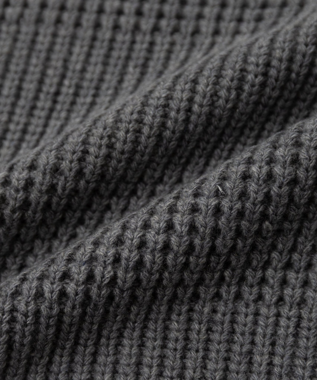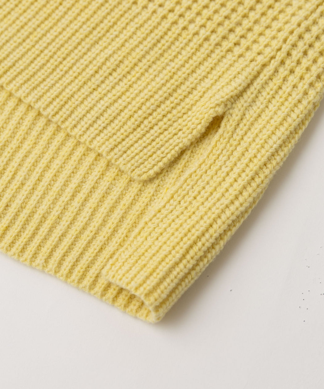片畦編みの程よい肉感が暖かな印象。そこにボーダー柄の編み柄をプラスしてポイントに。