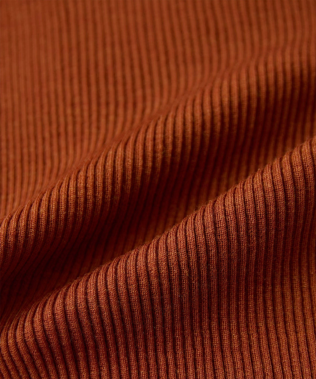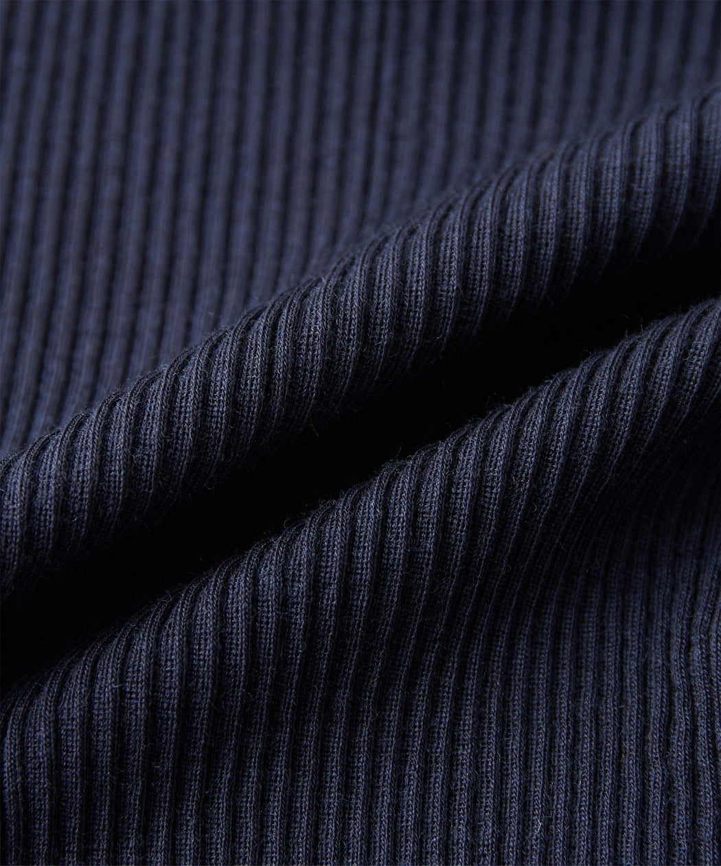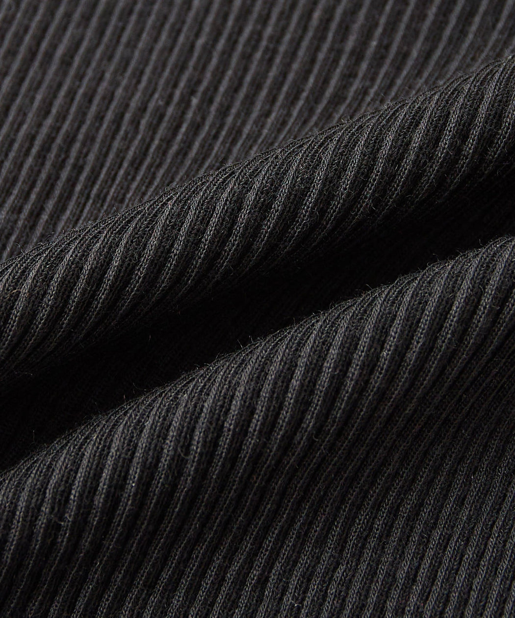 リブ編みならではの心地よいフィット感と丸胴仕上げによる縫い目のない滑らかなシルエットが特徴。
