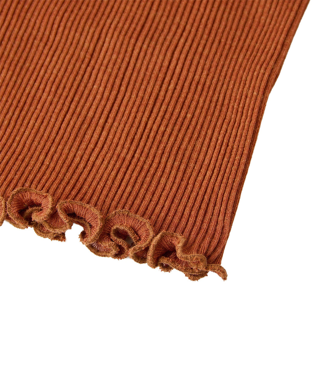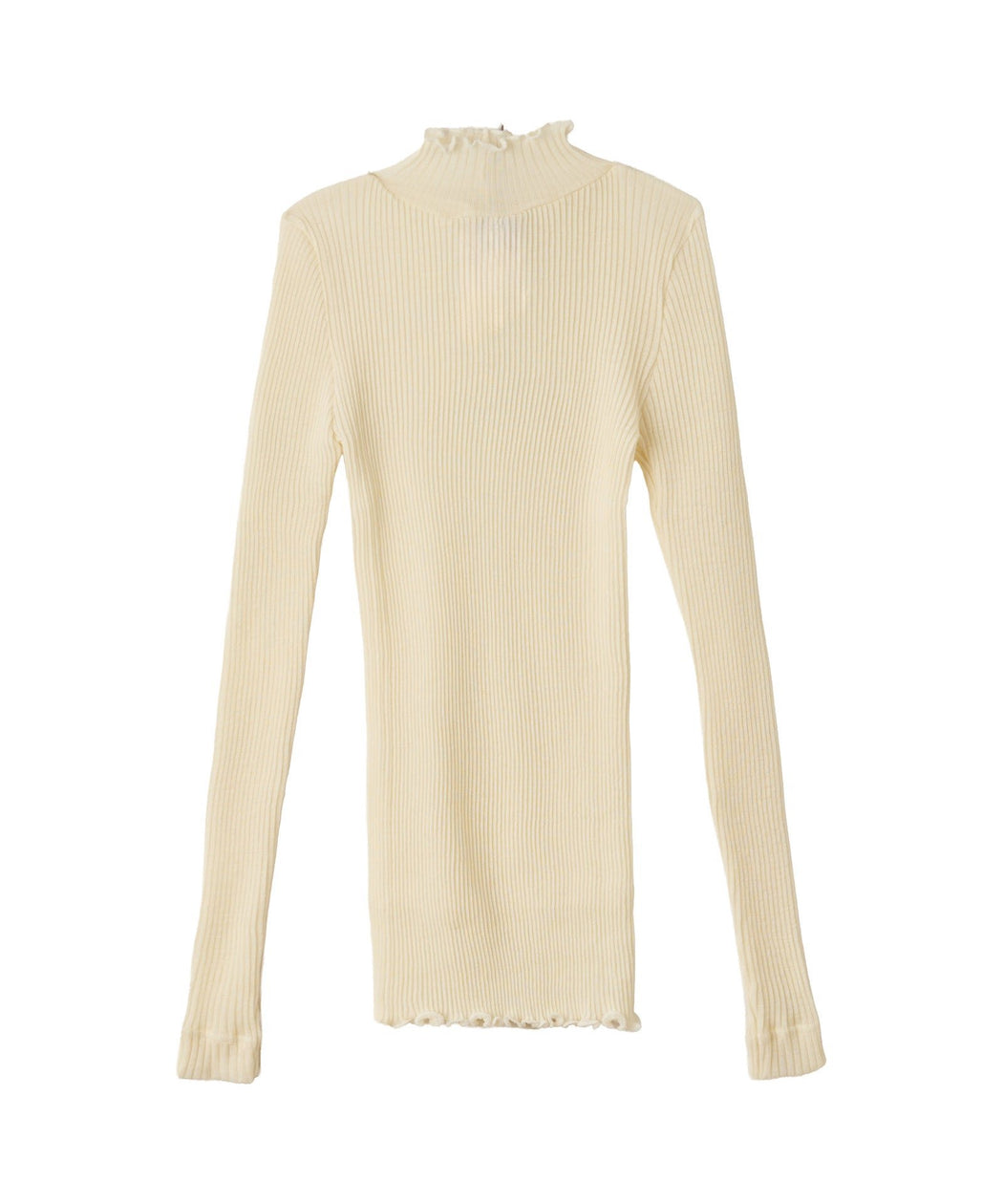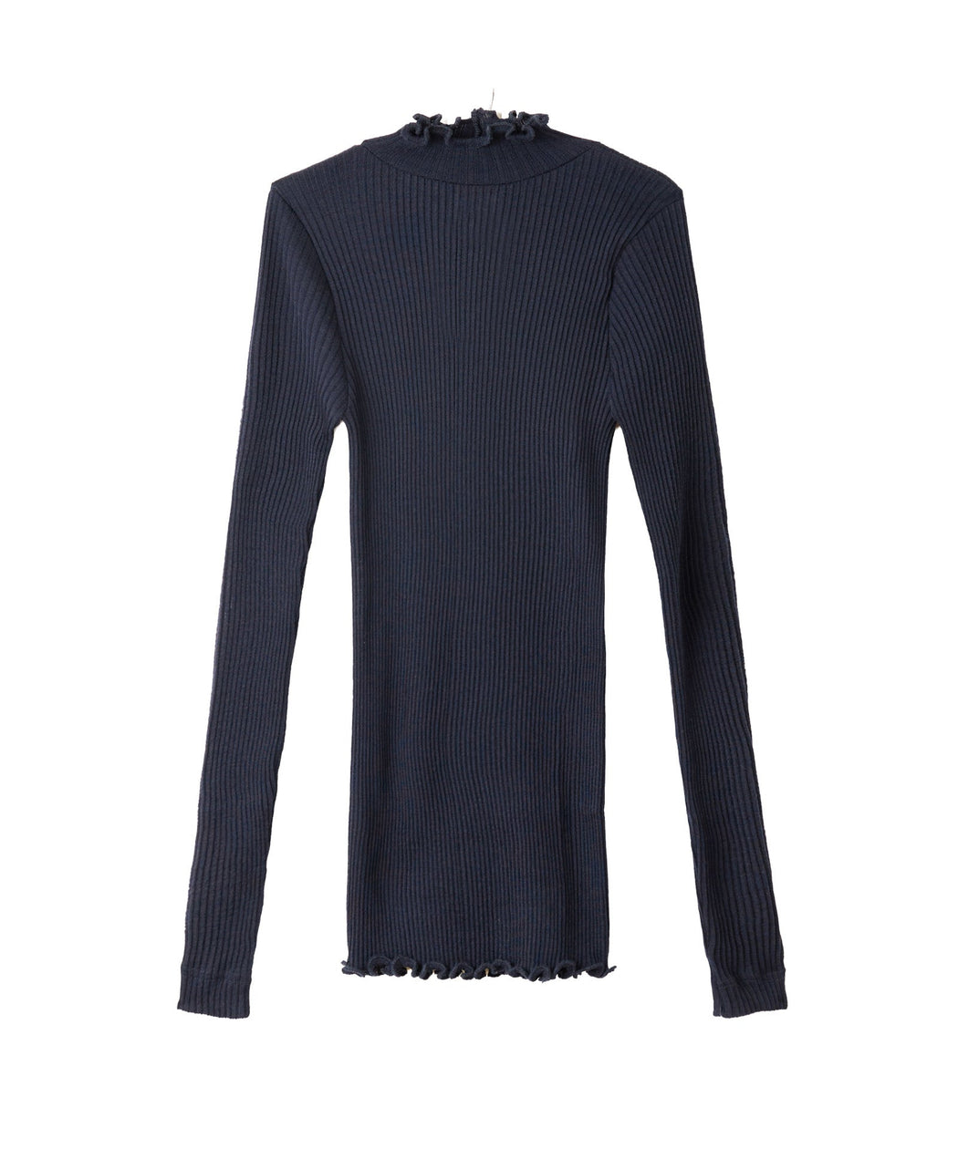 リブ編みならではの心地よいフィット感と丸胴仕上げによる縫い目のない滑らかなシルエットが特徴。