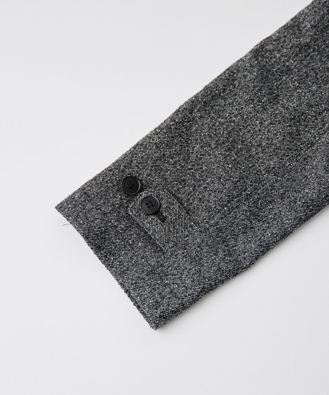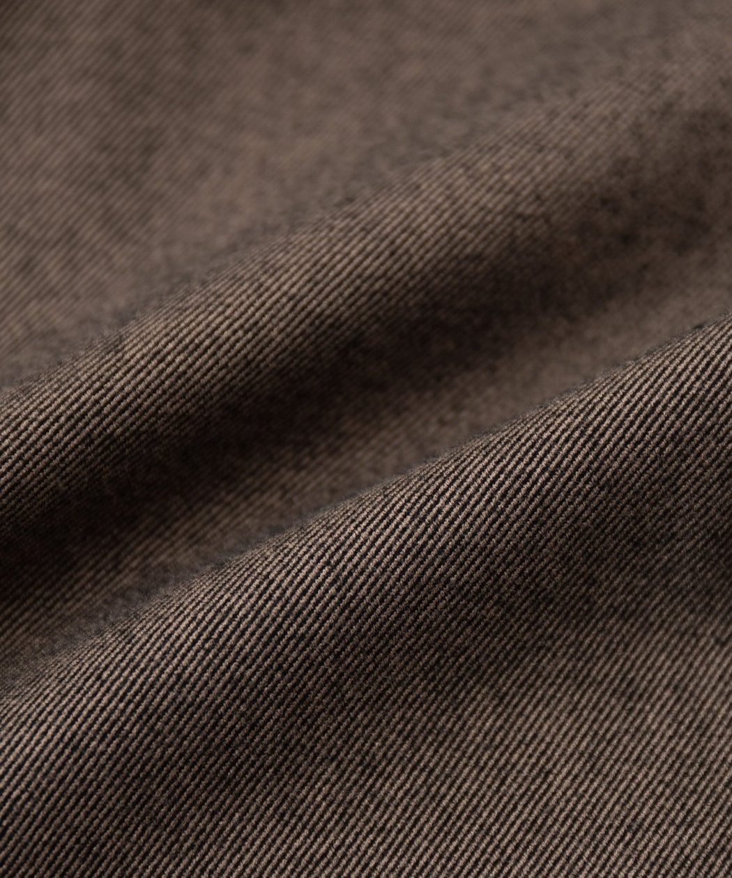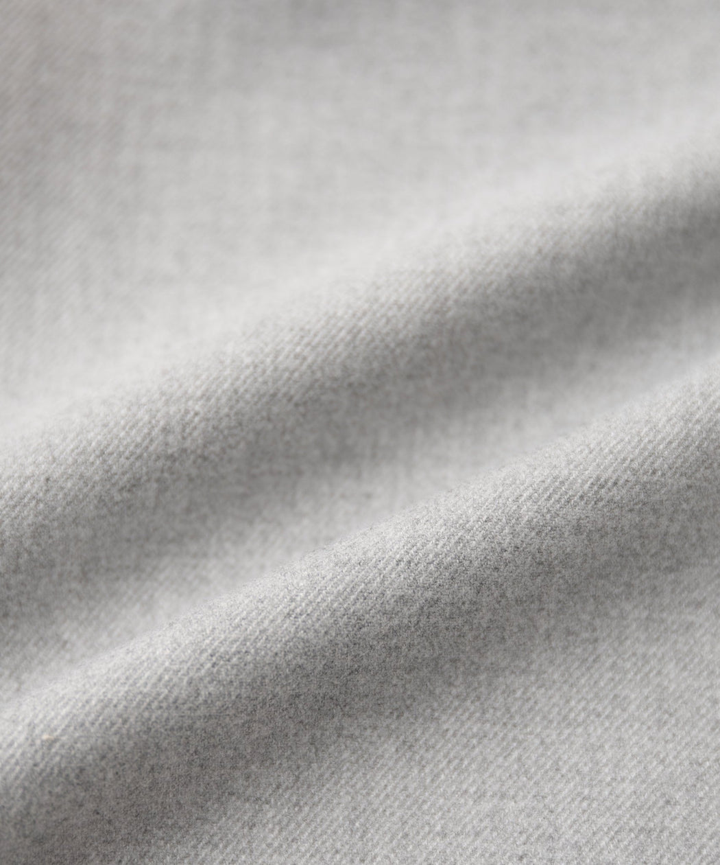 グレー、ブラウンカラーは軽い起毛感のあるフランネル素材、ブラックカラーは表面にツイードライクな表情のあるロングコート。