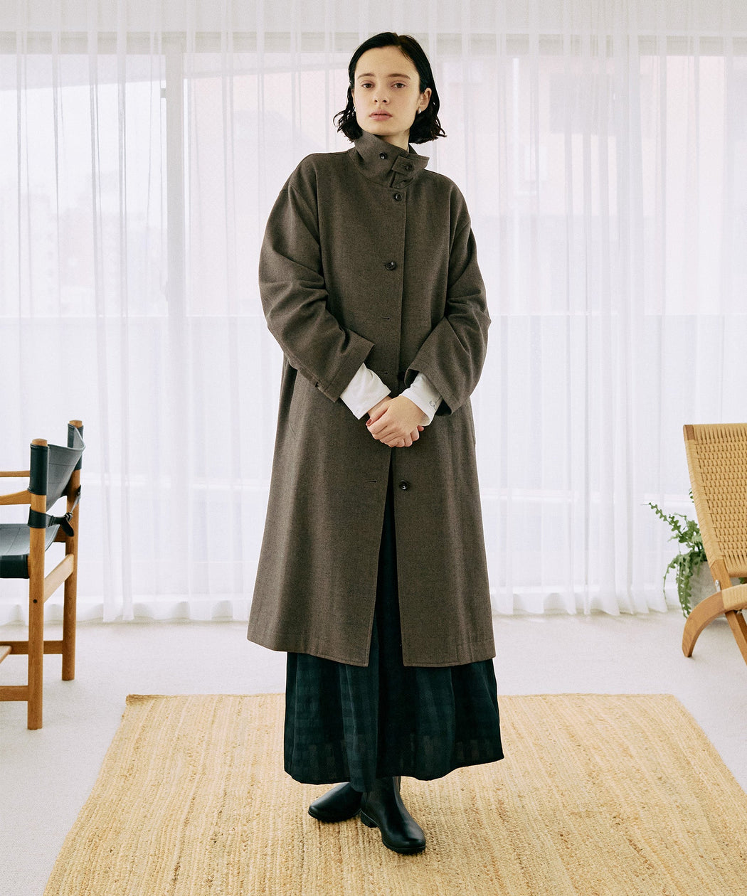 デザインは万能なステンカラーで、襟のサイズ感や肩落ち、袖の立体シルエットなど、輪郭までこだわり仕上げました。