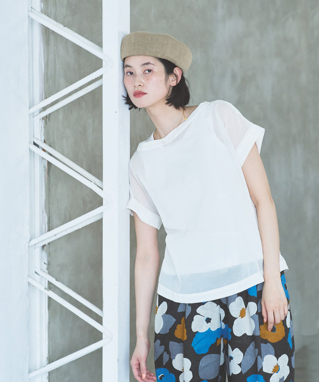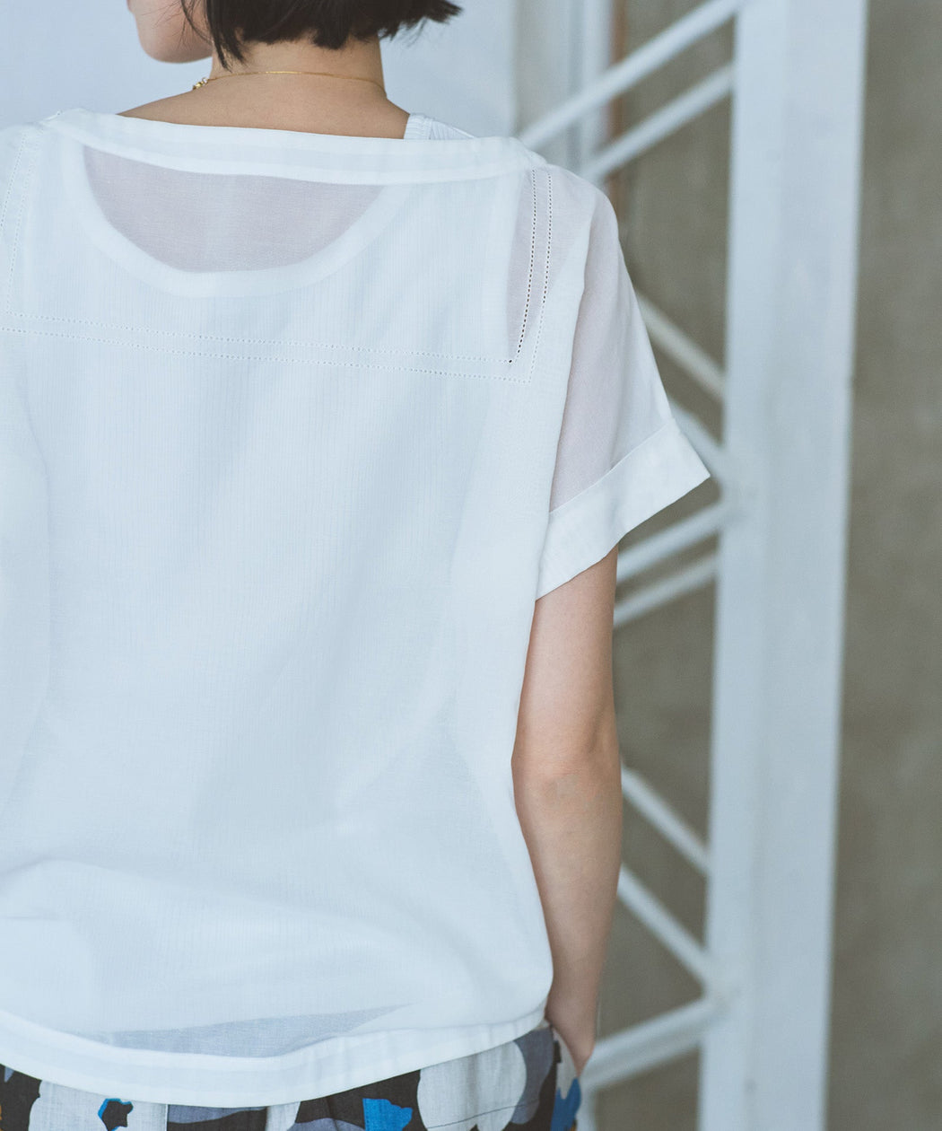 トレンドの透け感アイテムを天然素材で楽しめる、コットンオーガンジーのTシャツブラウス。