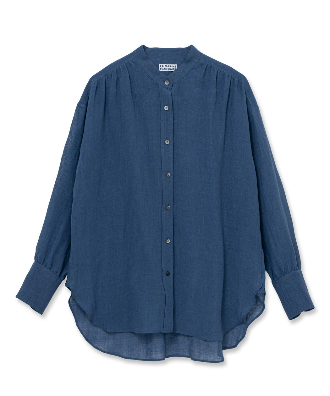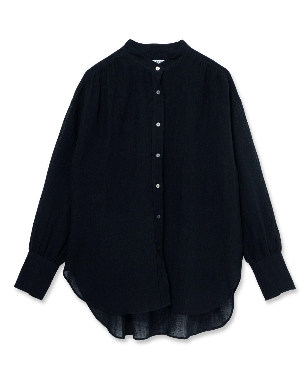 すっきりとしたスタンドカラーに、ほんのり前後差をつけたロング丈のデザインは、シャツワンピースとしても、軽やかな羽織としても活躍。