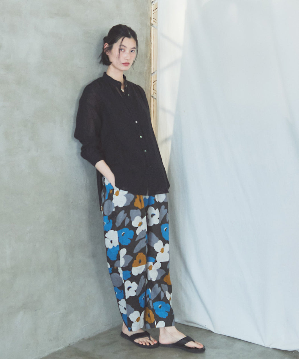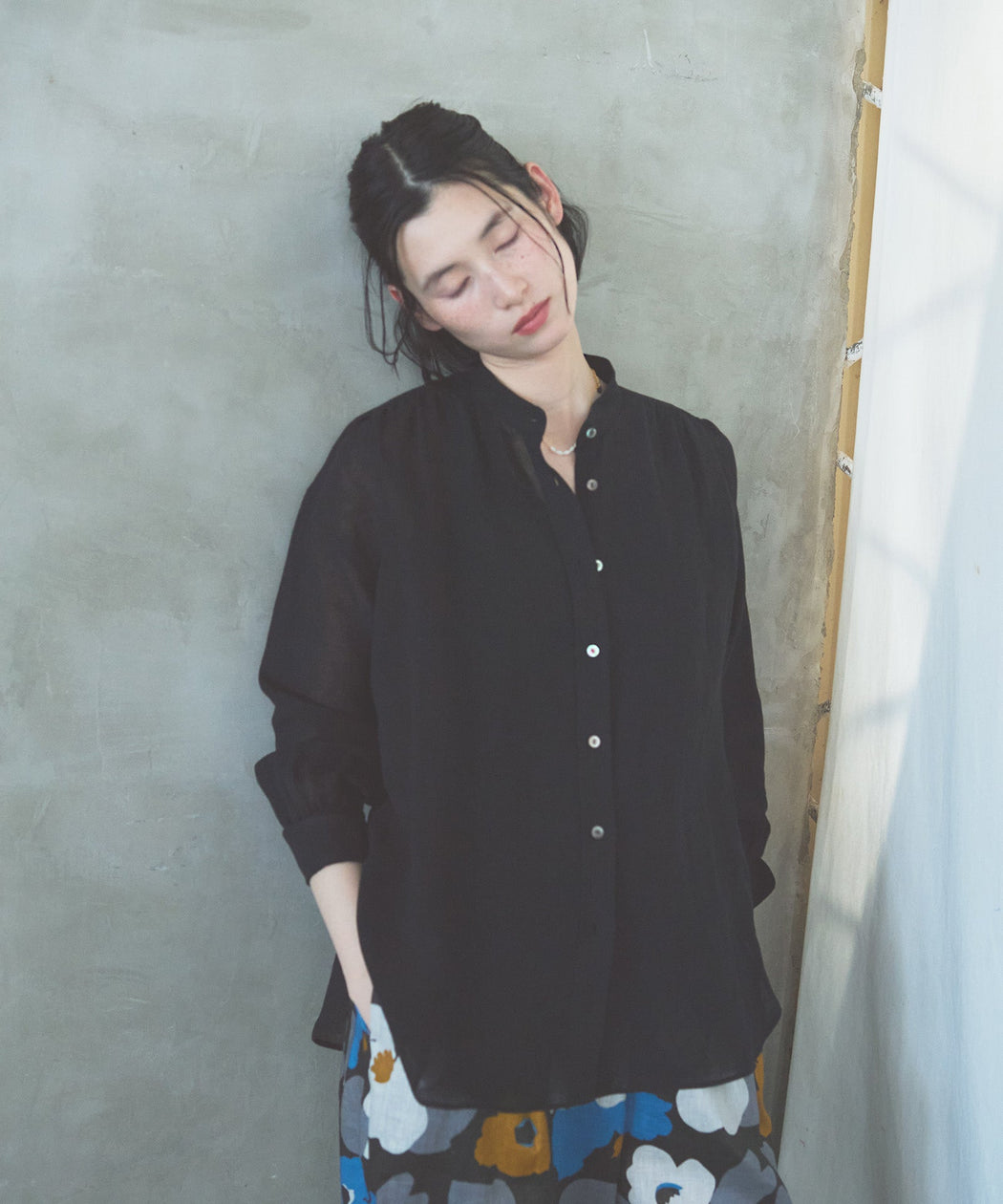 リネン特有の軽やかな透け感が大人っぽく、さらりとした着心地で春夏のスタイリングにぴったりです。