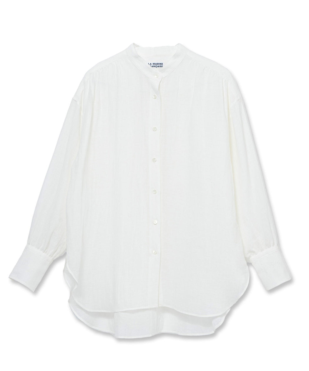 ナチュラルな透け感と上品な風合い、 日本製コットンリネンのスタンドロングシャツ
