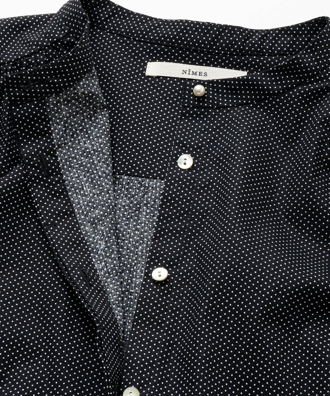 第1ボタンと袖口のカフスボタンにはアイコンのパールボタンを使用し、さりげない華やかさを演出しています。 2番目以降は比翼仕立てで、すっきりとした仕上がりに。