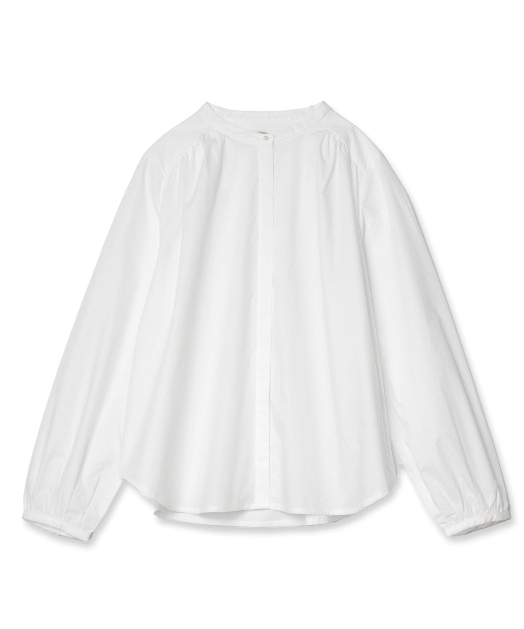 顔まわりをすっきり見せるスタンドカラーを採用。